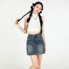 Vintage Niche Washed Tassel Ruffled Denim Saia Feminina 2023 Short Skirt A- Line Slim Sexy Hip Saia