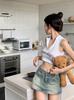 Europeu e Americano Básico Branco Pequeno Colete Verão Peito Envoltório Slim-fit Hot Girl Decote Em V Base Curta Sweet Hot Top