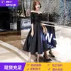 Vestido de Noite Pequeno Sexy 2026 Novo Estilo Primavera Elegante Comprimento Médio Slim-Fit Preto de Um Ombro Vestido de Festa para Mulheres