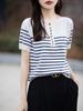 2024 moda verão estilo coreano laço listrado solto manga curta camiseta feminina cor de contraste meia gola aberta malha meia manga top feminino