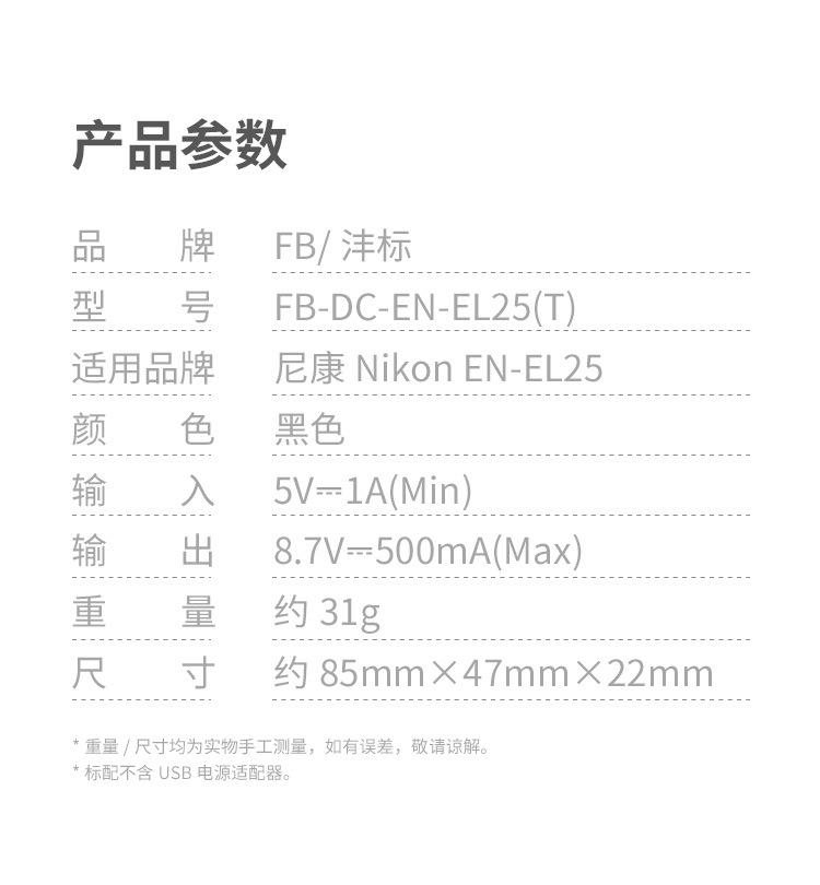 Carregador Fengbiao En-El25 Adequado para Nikon Nikon Mirrorless Z50 Z30 Zfc Câmera Carregador de Bateria