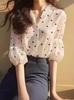 Moda Francesa Estilo Ocidental Fino High-end Top Light Madura Nicho Francês Onda Branca Dot Chiffon Camisa Verão Feminino