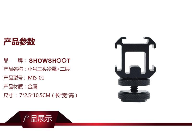 Base Sapata Quente de Três Cabeças, Luz de Preenchimento, Microfone, Monitor, Base Multifuncional Um-Para-Três