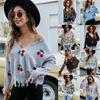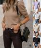 Europeu e Americano Primavera e Verão Transfronteiriço Europeu e Americano Comércio Exterior Novo Amazon Pulôver Tricot para Mulheres Cor Sólida Lapela Tricot Feminino