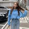 Moletom Versátil Estilo Coreano Novo Outono e Inverno 2026 Solto com Capuz e Bainha com Cordão, Estilo Curto Emagrecedor, Moda Feminina Forrado com Lã
