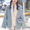 Casaco de Lã Azul Estilo Hepburn Francês Estilo Ocidental Redutor de Idade Estilo Coreano Solto Pequeno Top Casaco Quente Suave