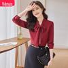2025 Primavera Nova Camisa Elegante Feminina Decote V Chiffon Manga Longa Camisa Estilo Ocidental Moderna Versátil Blusa para Usar por Baixo