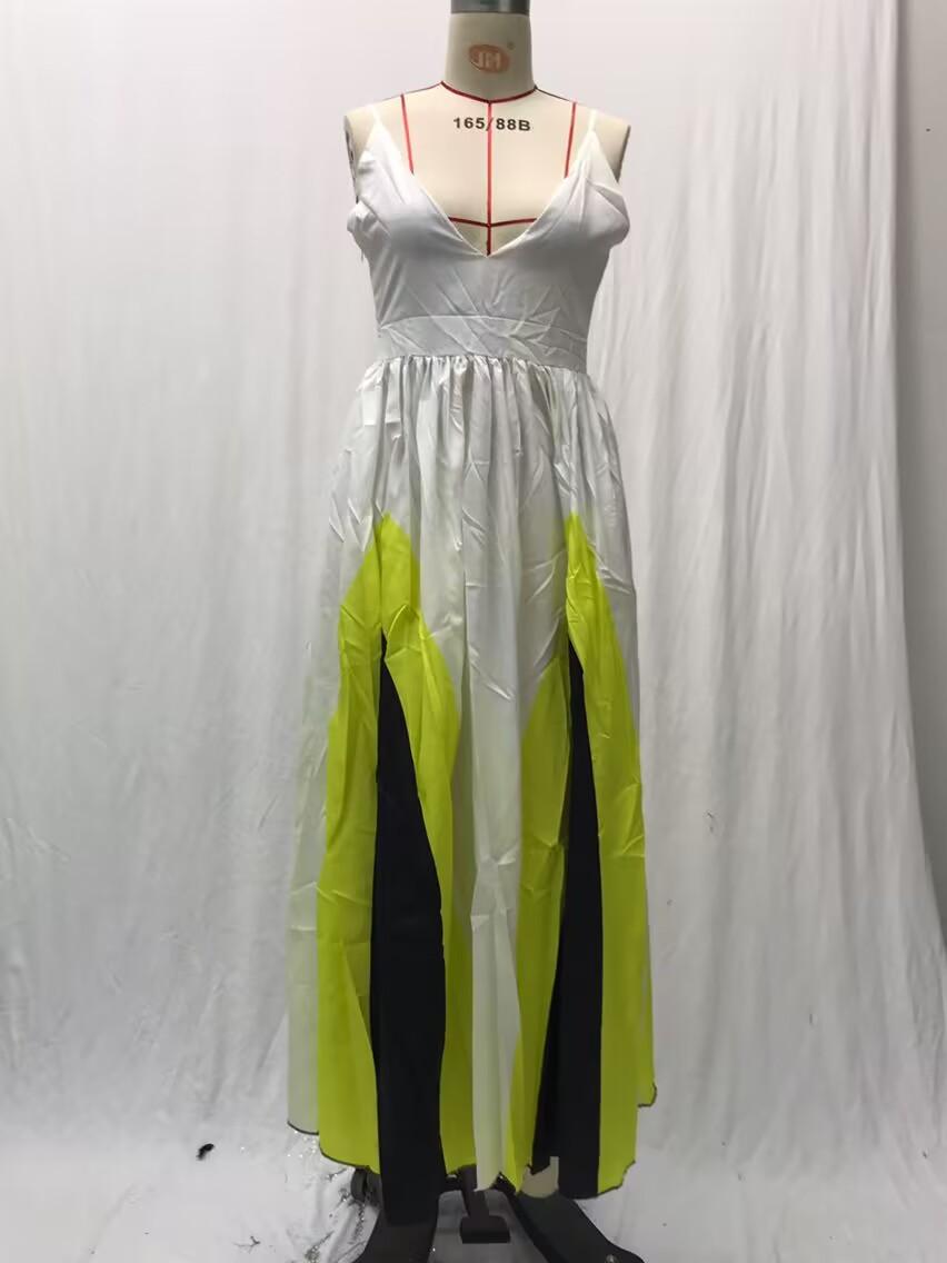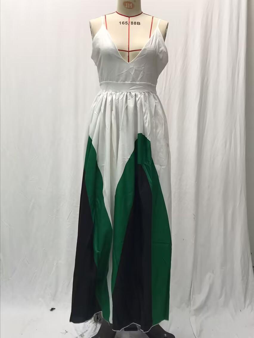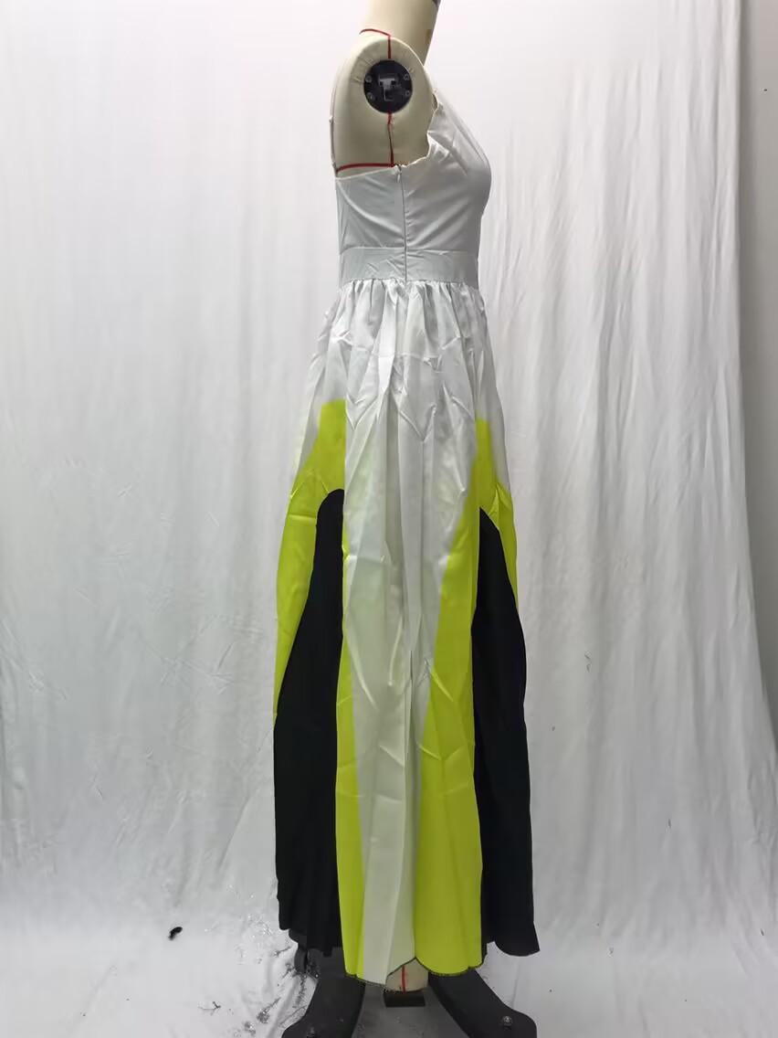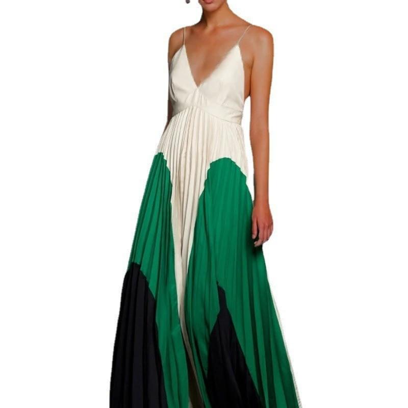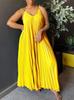 2025Wish Verão Transfronteiriço Vestido Europeu e Americano Look Emagrecedor Longo Colorido Plissado Saia Suspender Saia Longa
