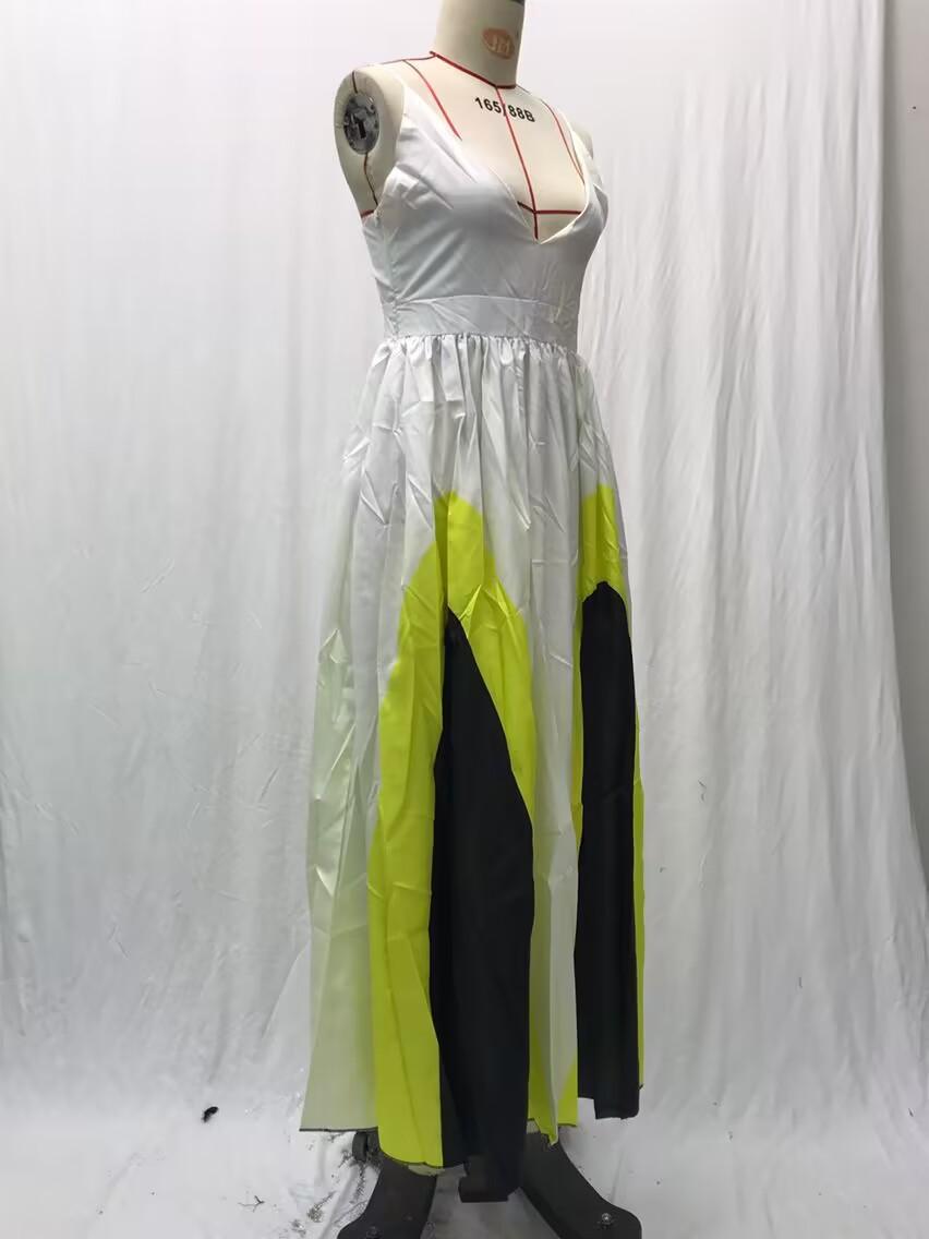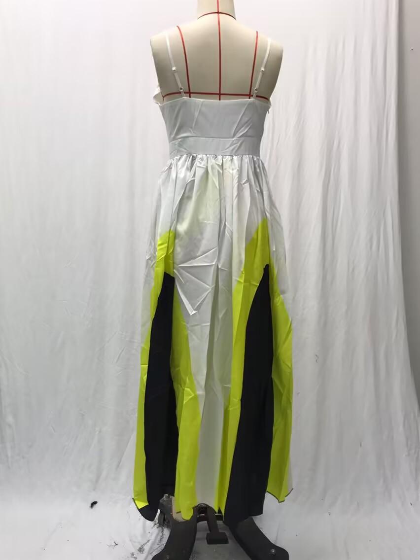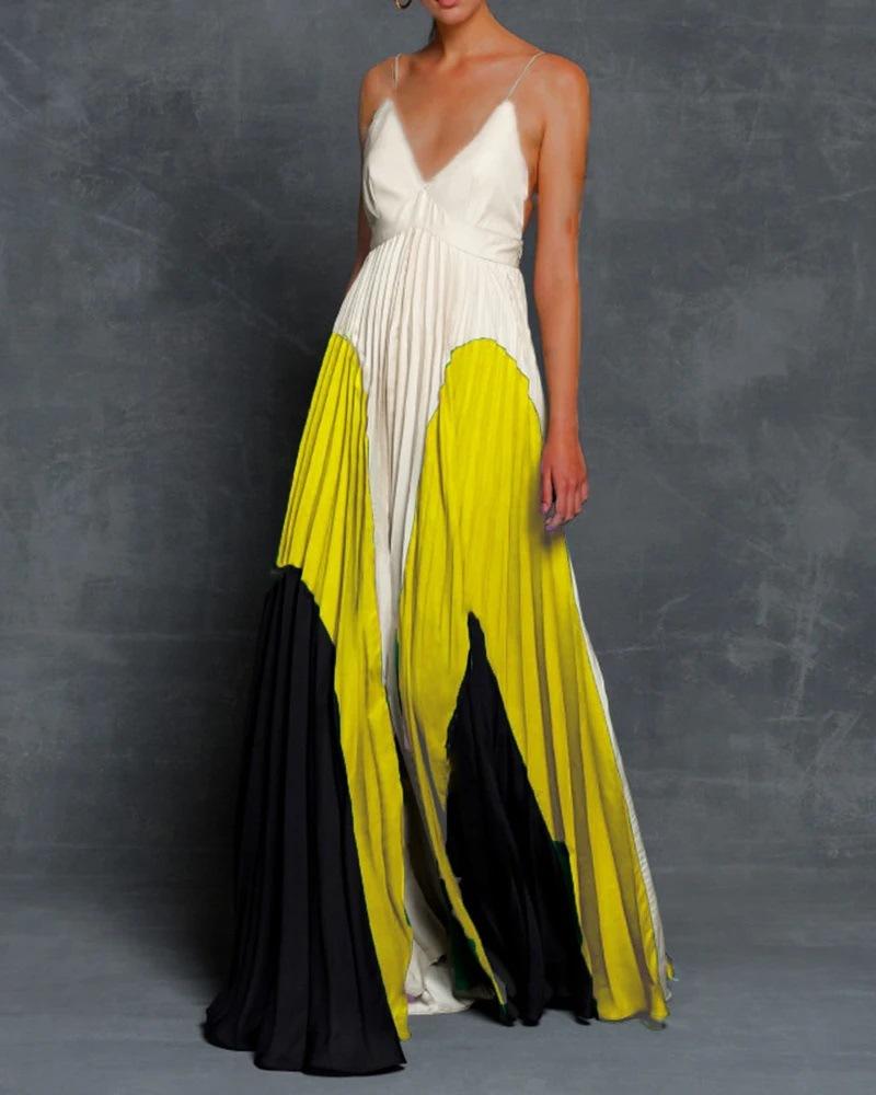 2025Wish Verão Transfronteiriço Vestido Europeu e Americano Look Emagrecedor Longo Colorido Plissado Saia Suspender Saia Longa