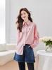 Nova camisa listrada solta pequena cereja bordada polo colarinho camisa mulheres camisa longa mulheres