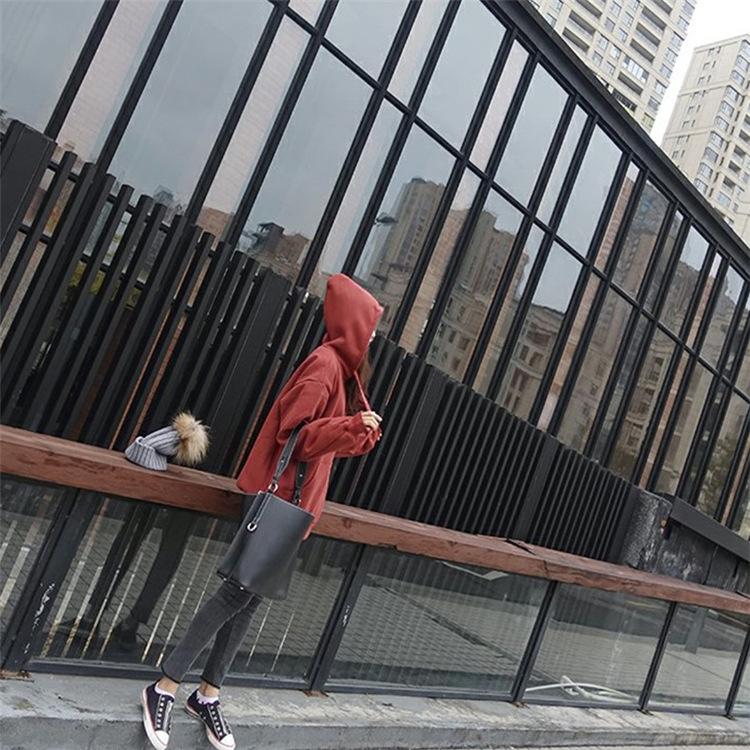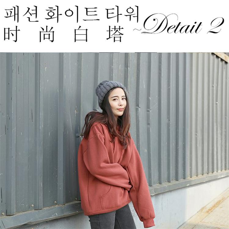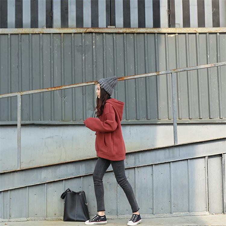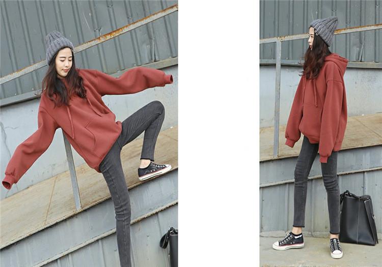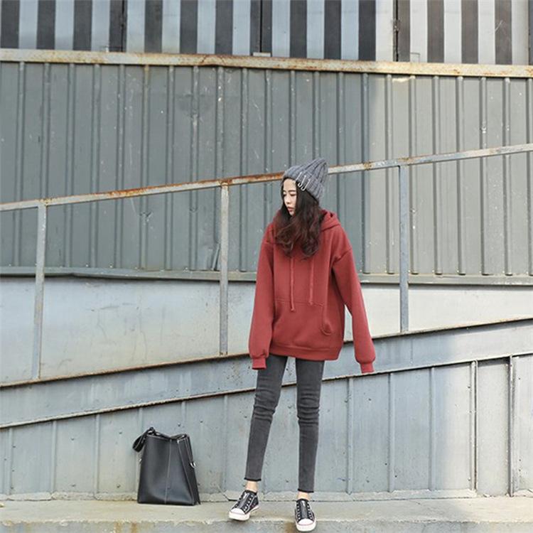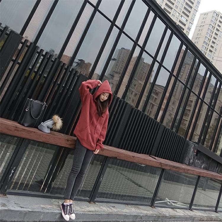 Suéter com capuz forrado de lã Outono e Inverno Novo Estilo Coreano Solto Estudante Grosso Cor Sólida Pullover Top