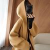 Cardigan com zíper de comprimento médio Cashmere Casaco de malha com capuz 22 Outono e Inverno Novo casaco feminino engrossado solto de manga comprida com Bocket