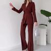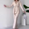 Outono 2024 nova Amazônia europeia e americana cross-border cross-border cor sólida rendada cintura lapela elegante terno terno de duas peças terno