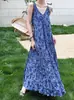 Saia à beira-mar Sanya francesa solta vestido elegante com impressão de tinta e estilingue estilo de férias para o verão