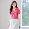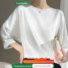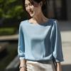 Seda Seda 2023 Verão Feminino Novo Pescoço Redondo Elegante Camisa Elegante Sete Mangas Cor Sólida Simples All-Match Top