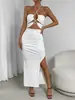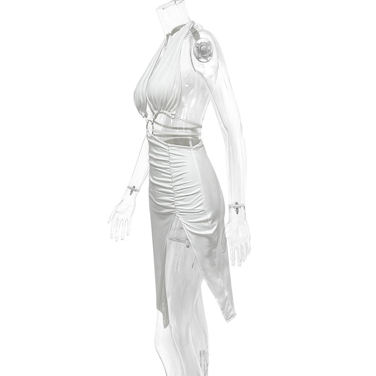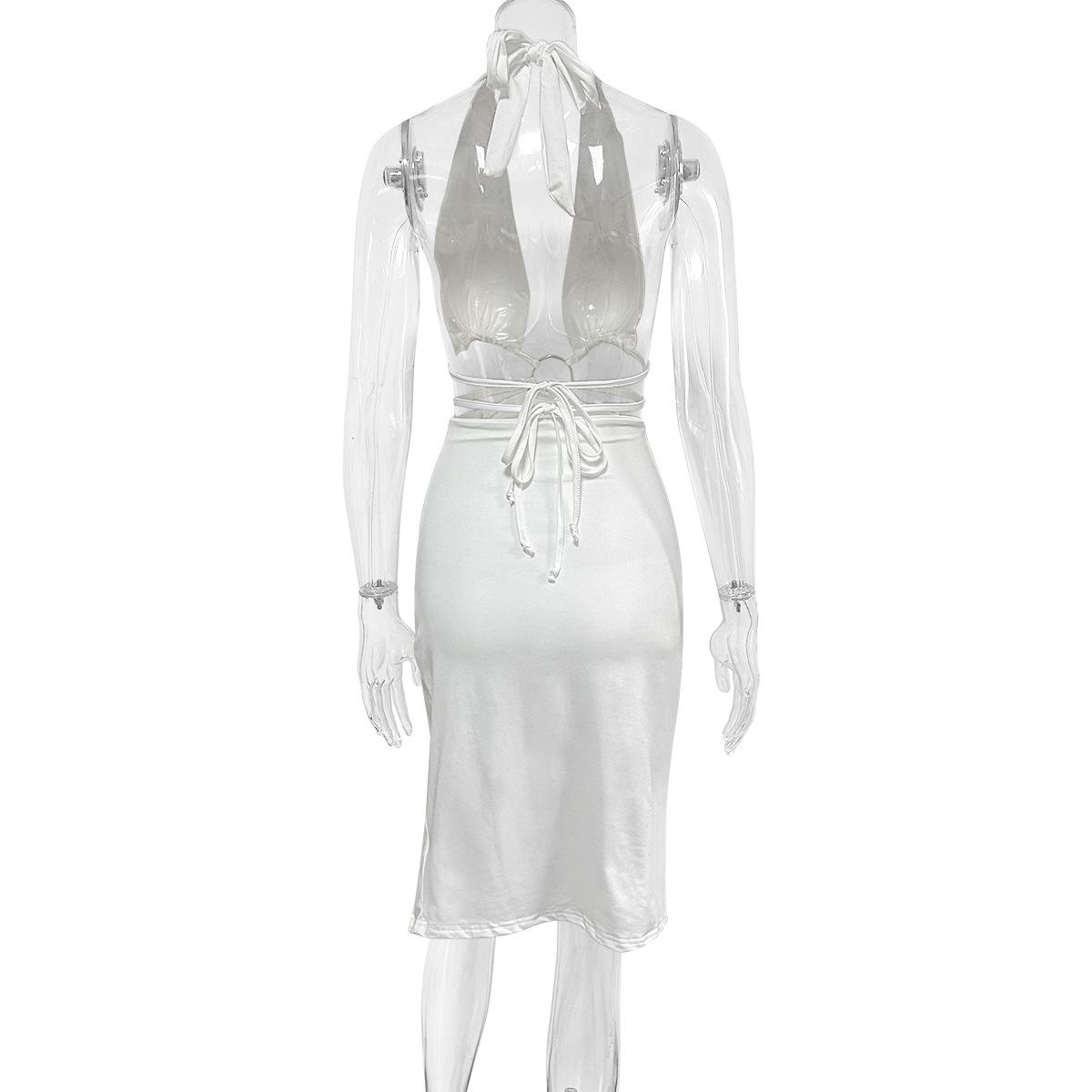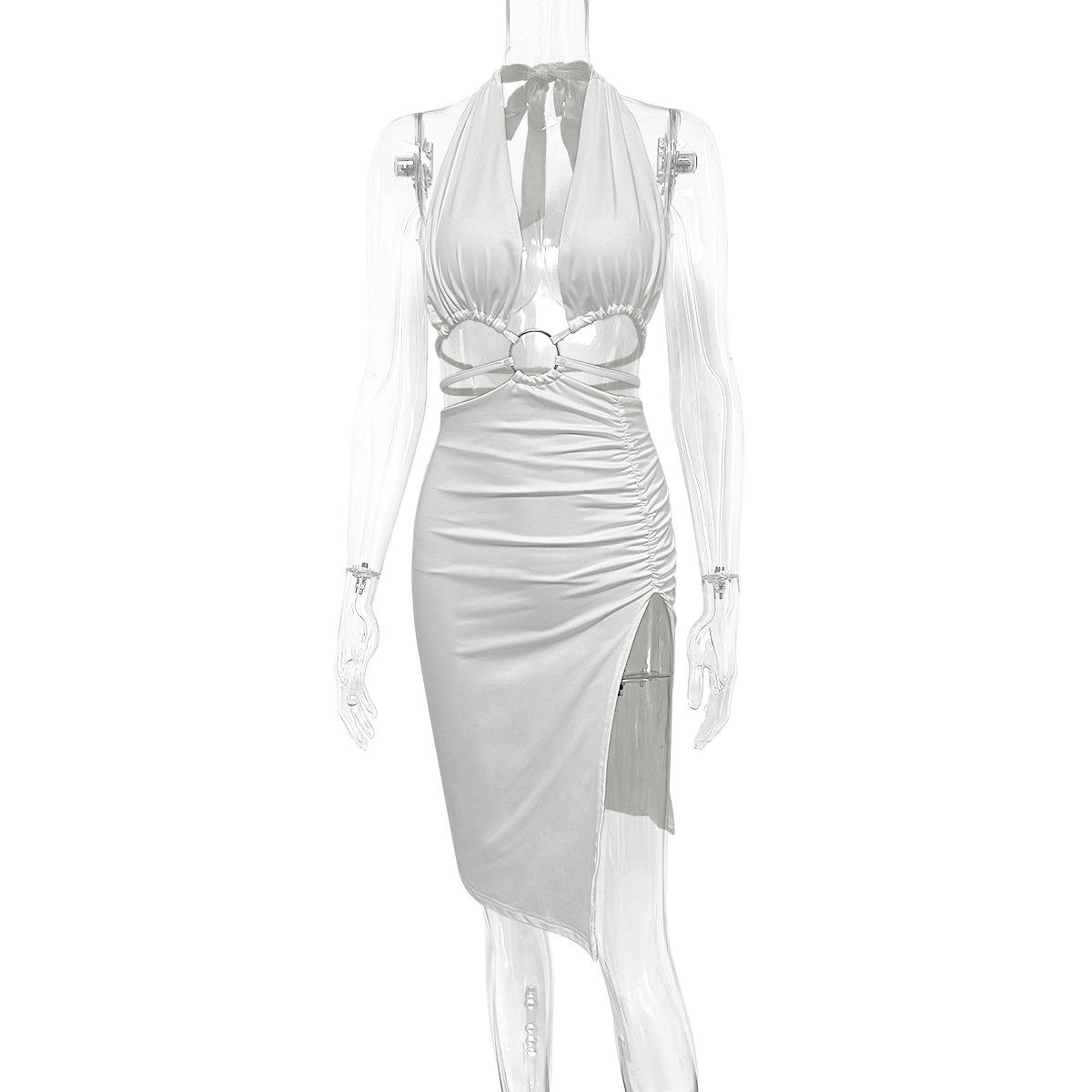 2024 verão transfronteiriço novo halter pescoço irregular fenda sexy vestido feminino;