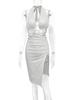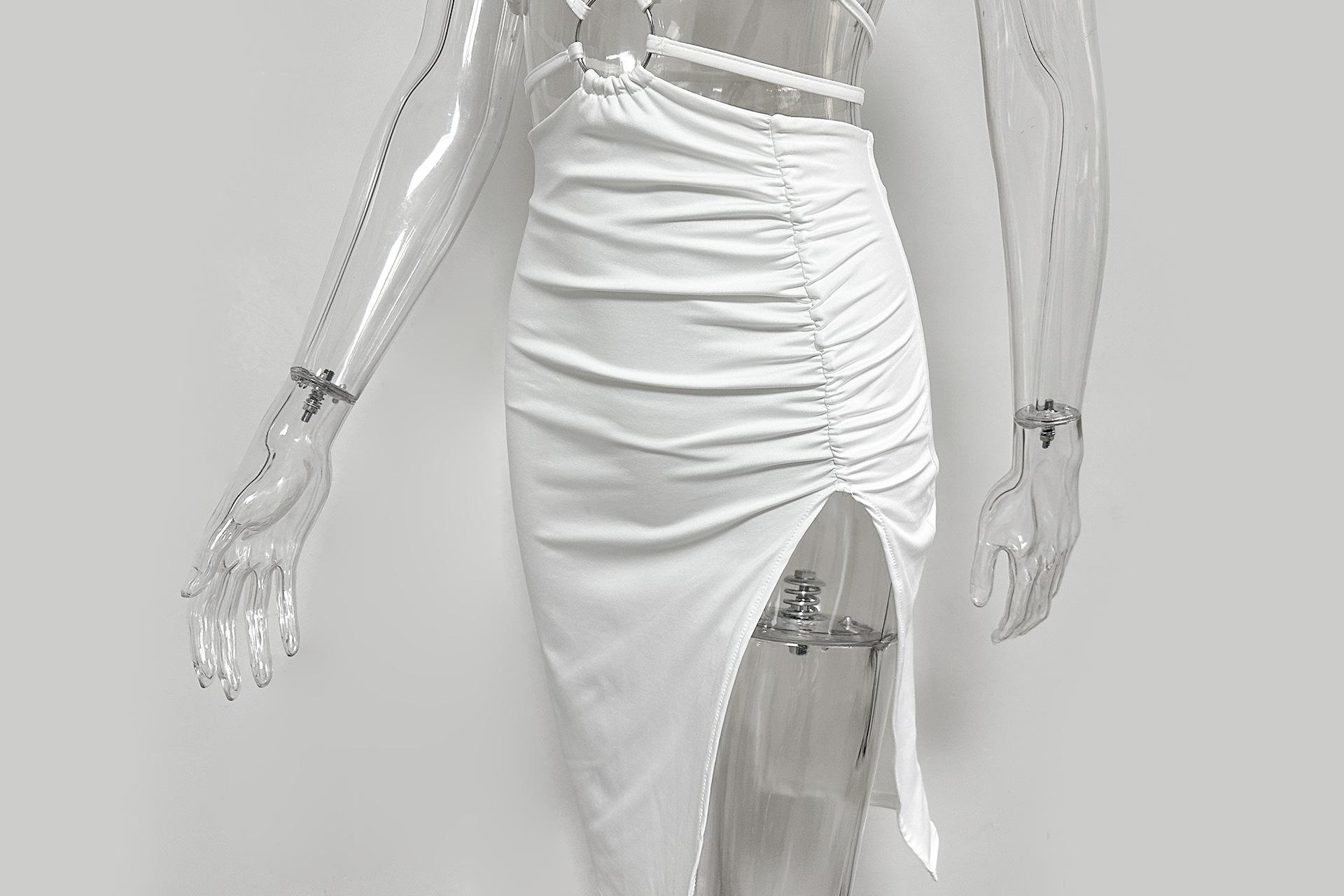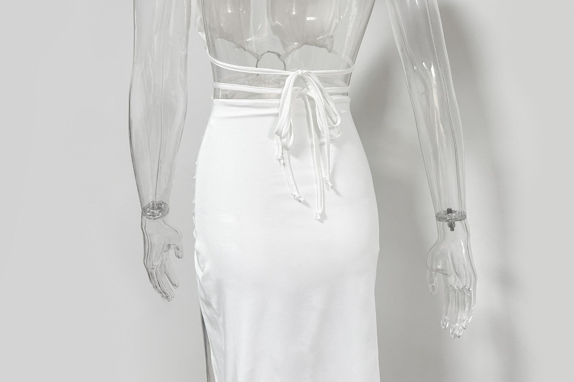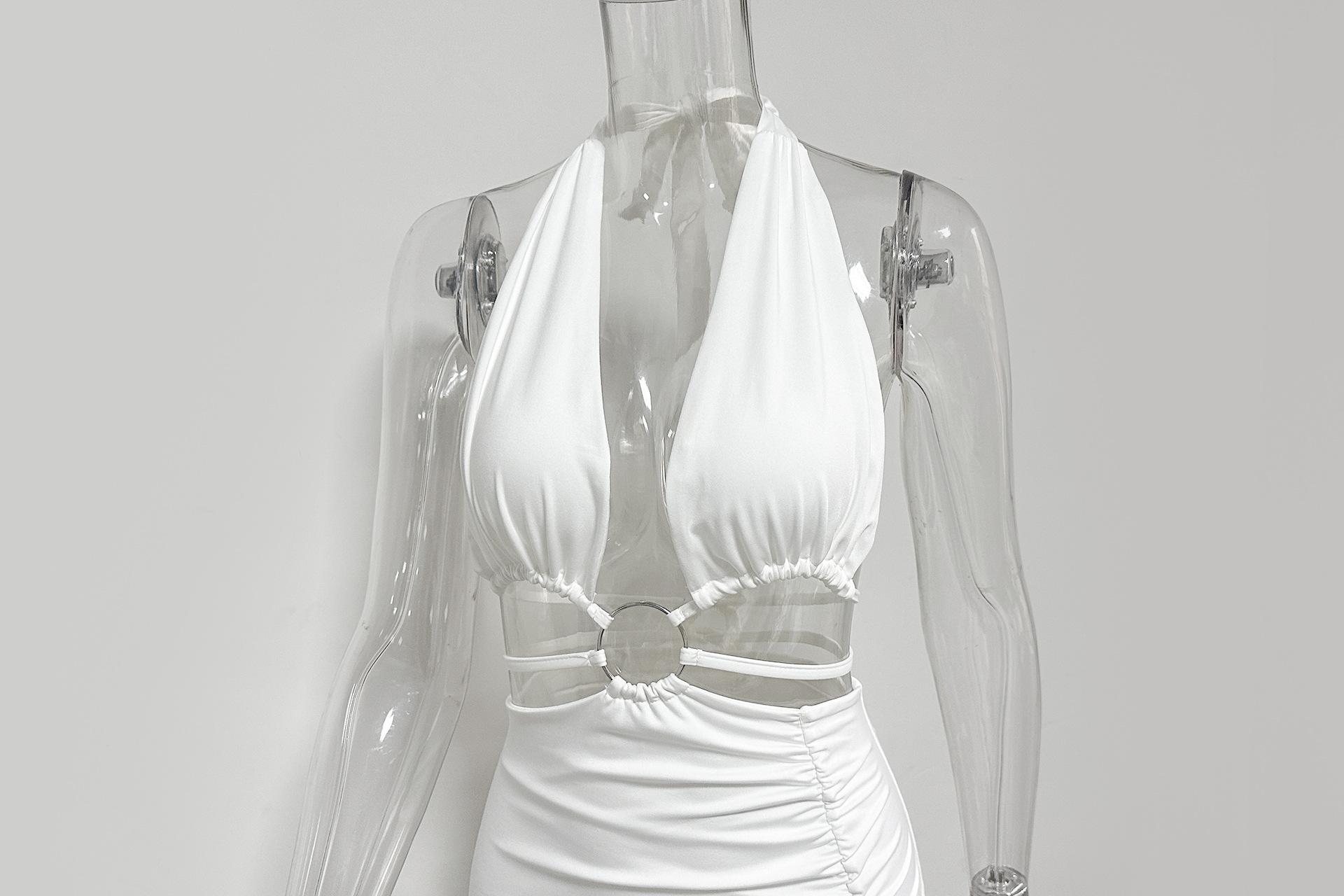 2024 verão transfronteiriço novo halter pescoço irregular fenda sexy vestido feminino;