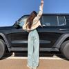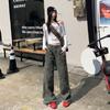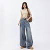 Jovem laranja # moda cool moda degradê cor larga perna jeans cintura alta das mulheres emagrecimento solto moda all-match calças retas