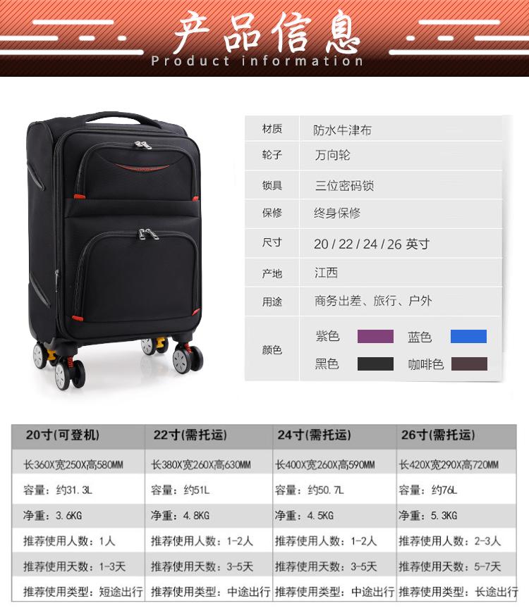 Fábrica por atacado universal roda caixa de embarque bagagem de estudante remessa feminina caixa de viagem caixa de bonde de pano Oxford impermeável