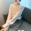 Camisas Versáteis de Cor Sólida Novas de Primavera e Outono 2024 Camisas da Moda Retrô Simples de Gola Redonda e Manga Bufante para Mulheres