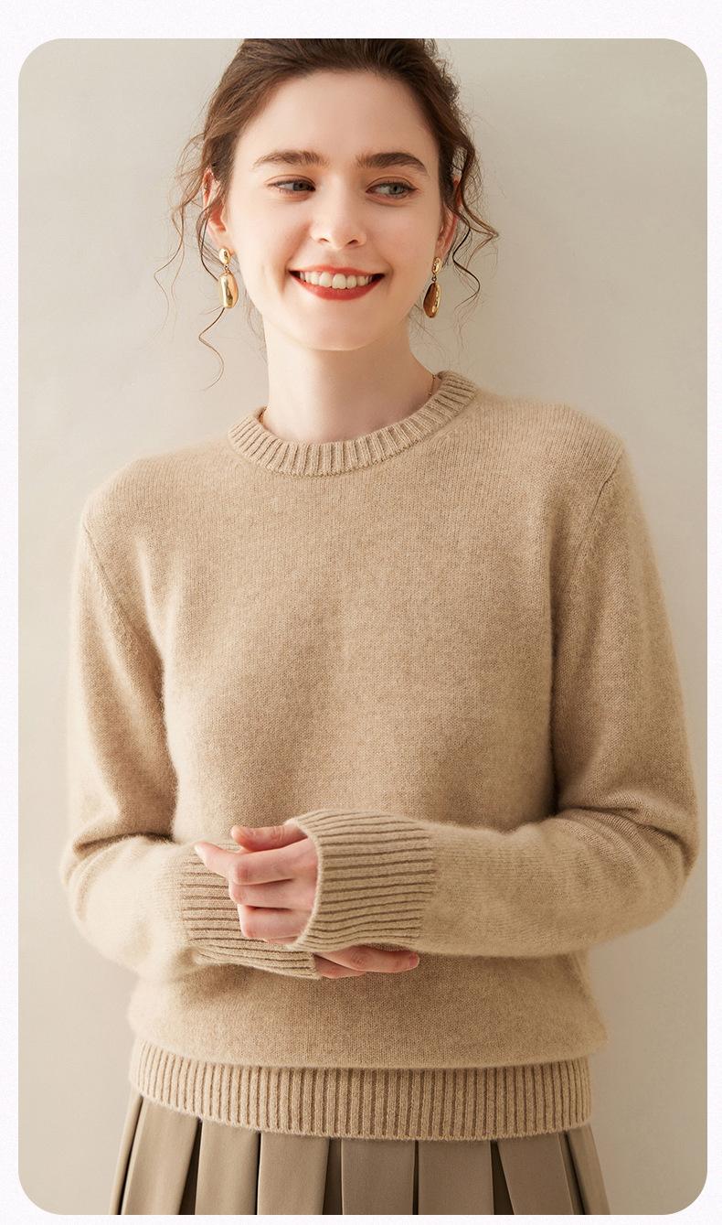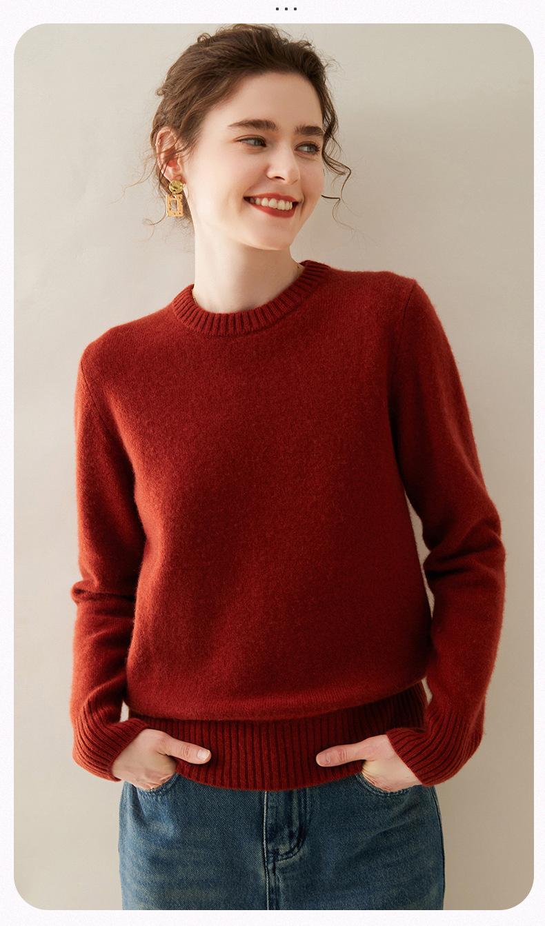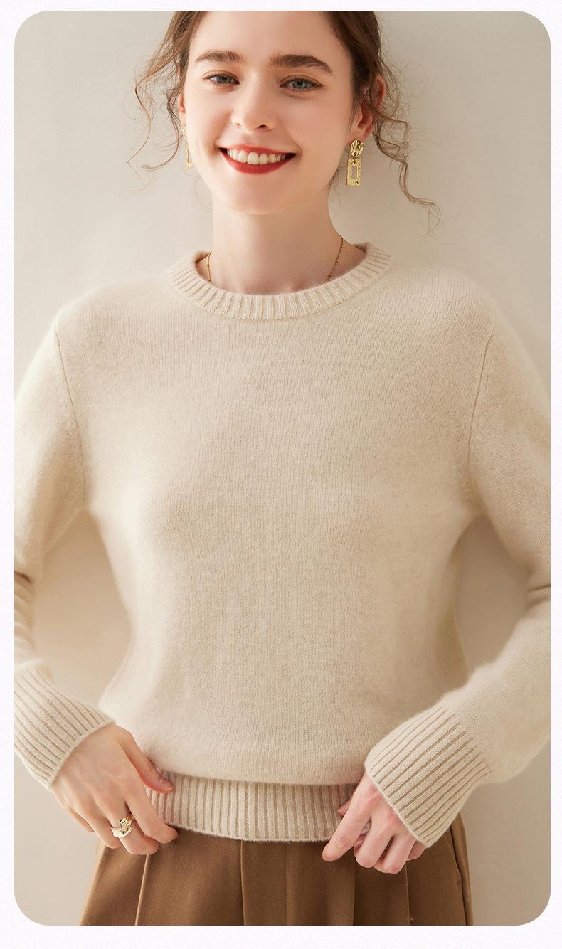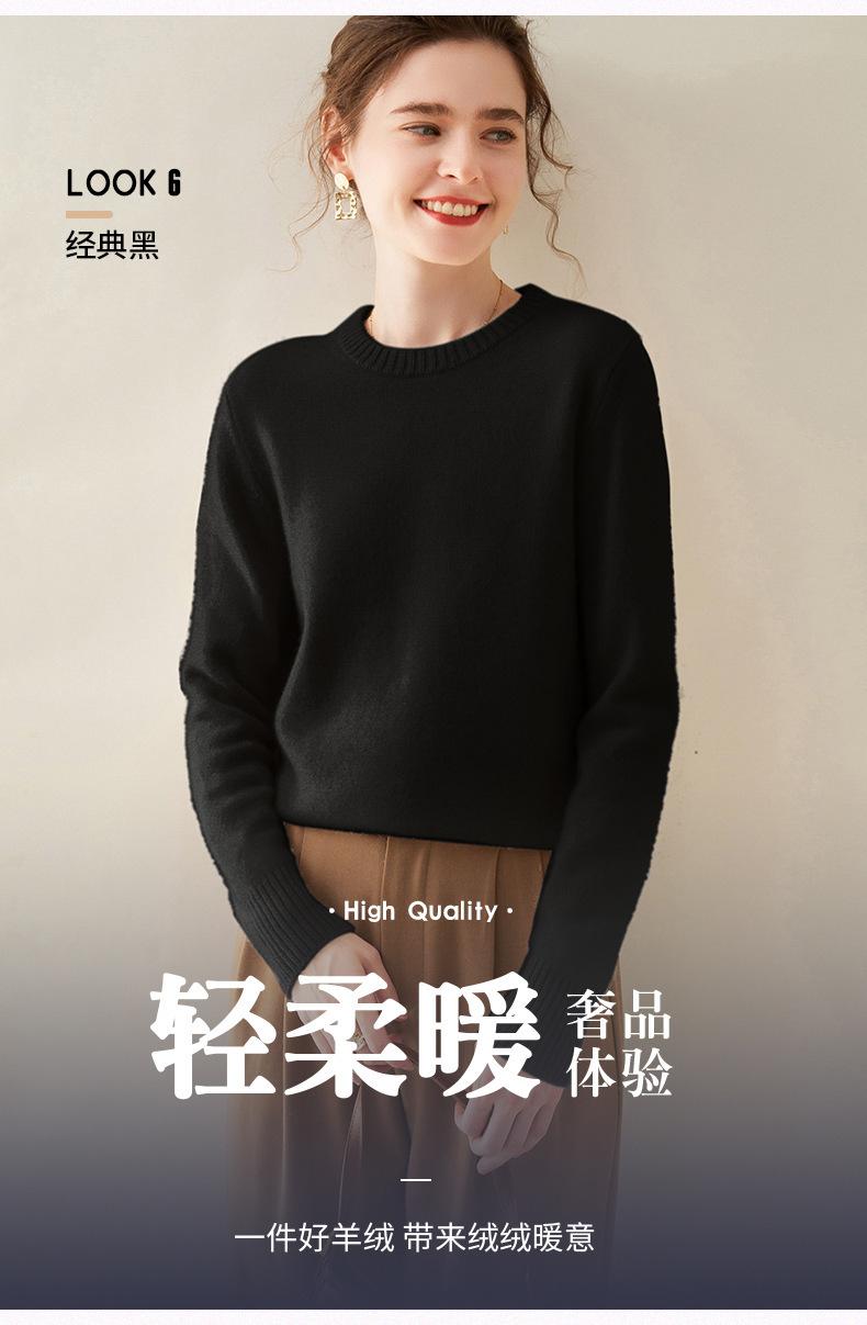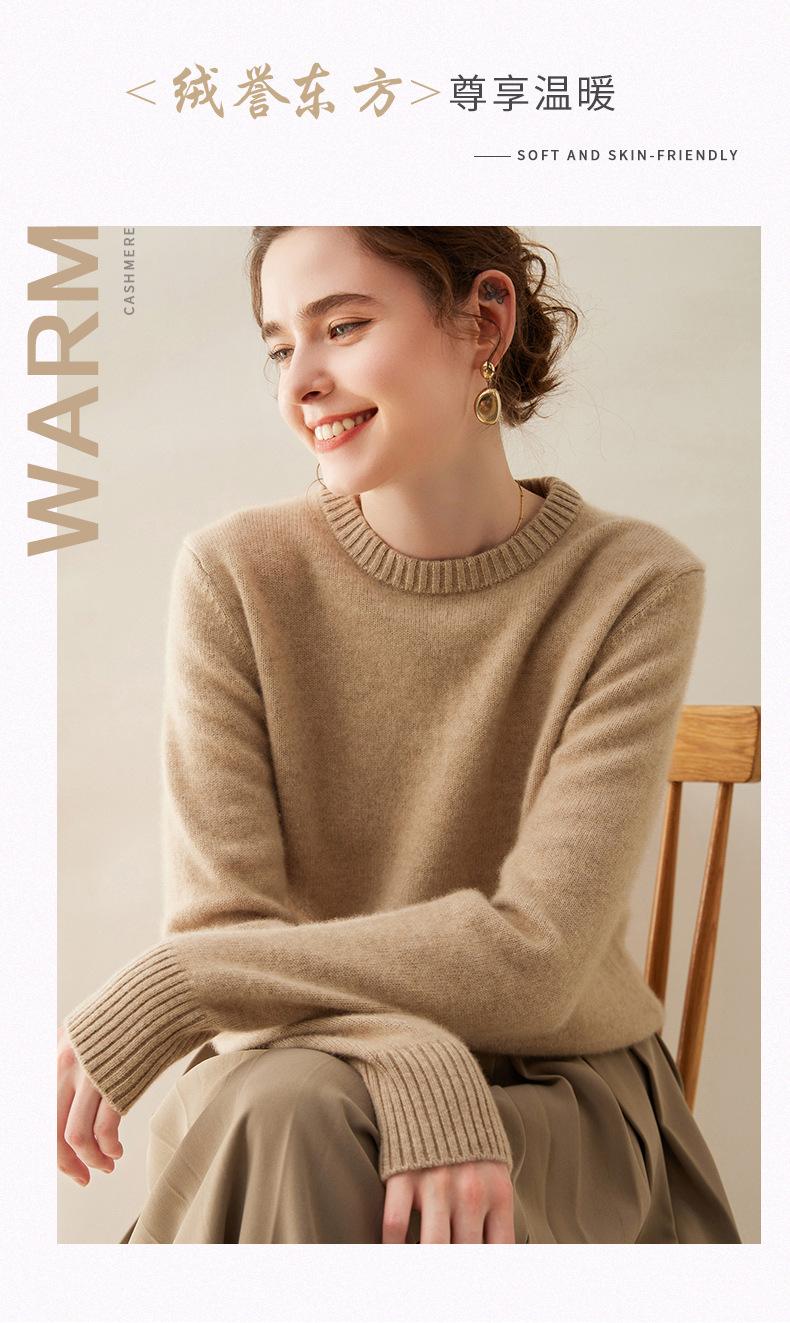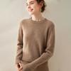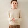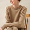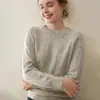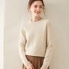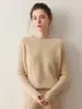 Outono e Inverno dupla fio engrossado pescoço redondo básico camisola de caxemira feminina de mangas compridas camisola inferior versátil caxemira solta