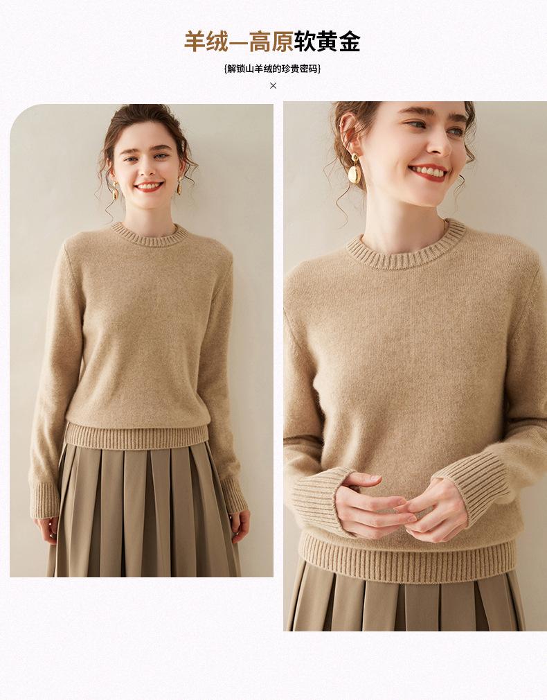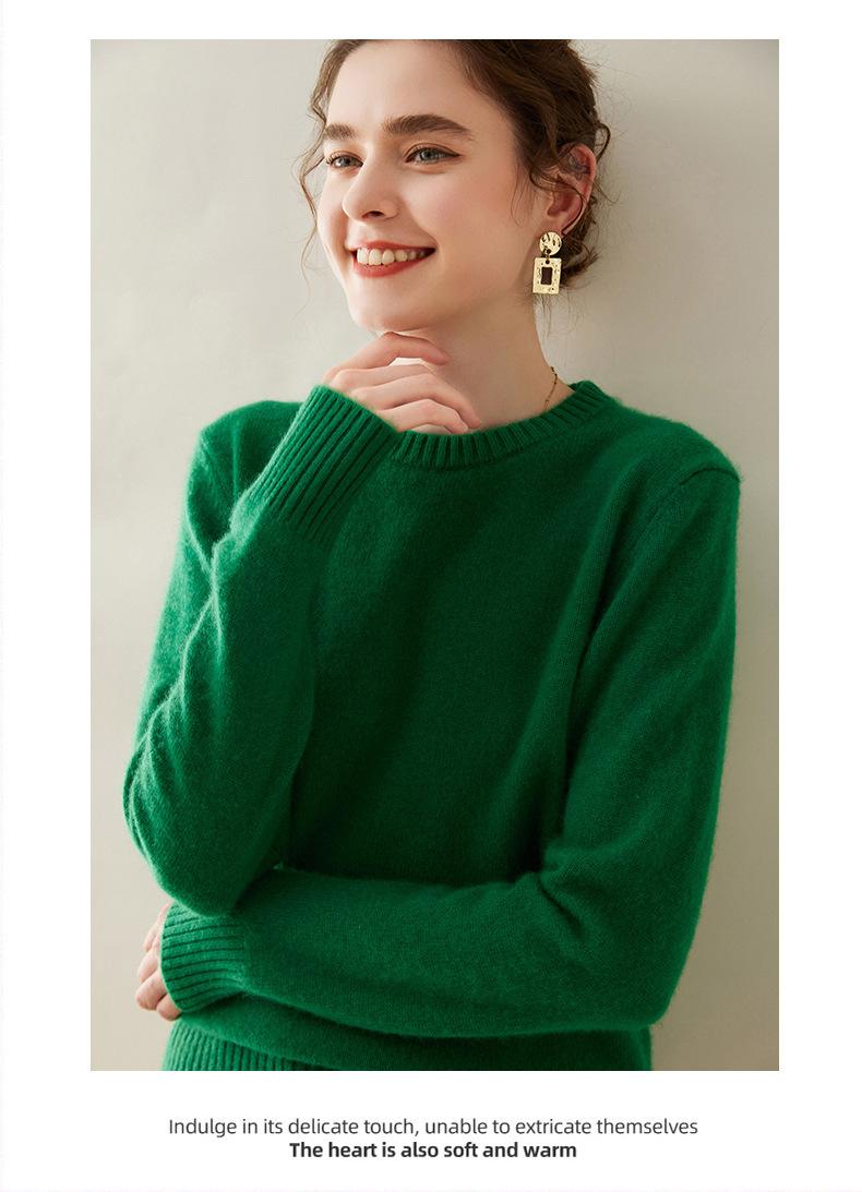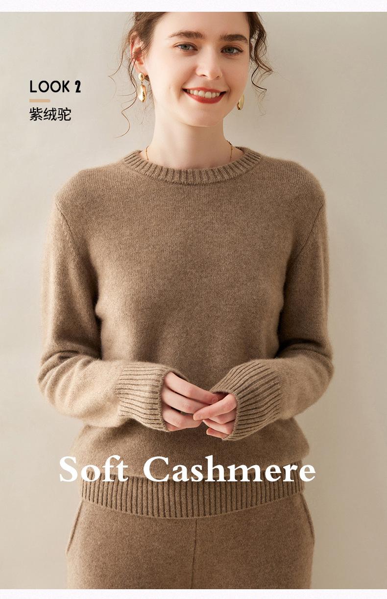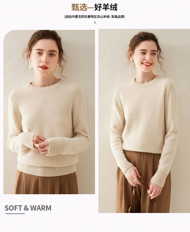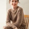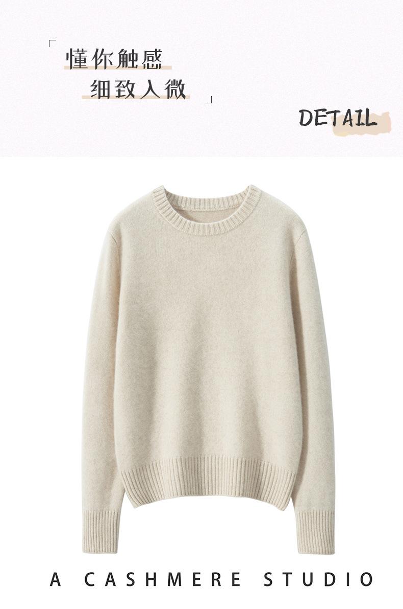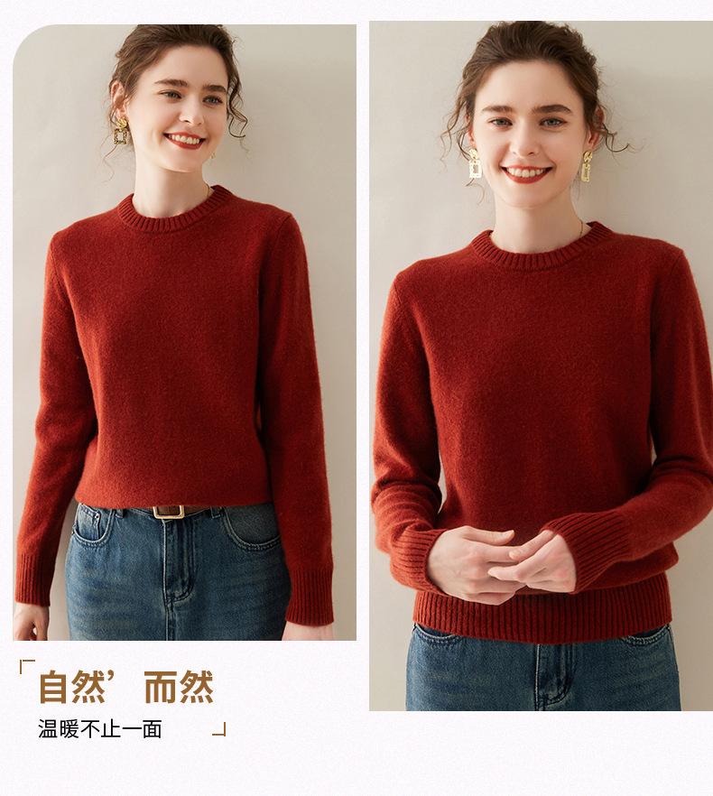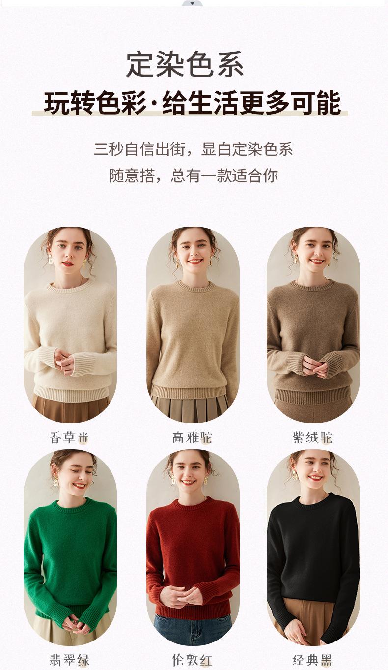 Outono e Inverno dupla fio engrossado pescoço redondo básico camisola de caxemira feminina de mangas compridas camisola inferior versátil caxemira solta