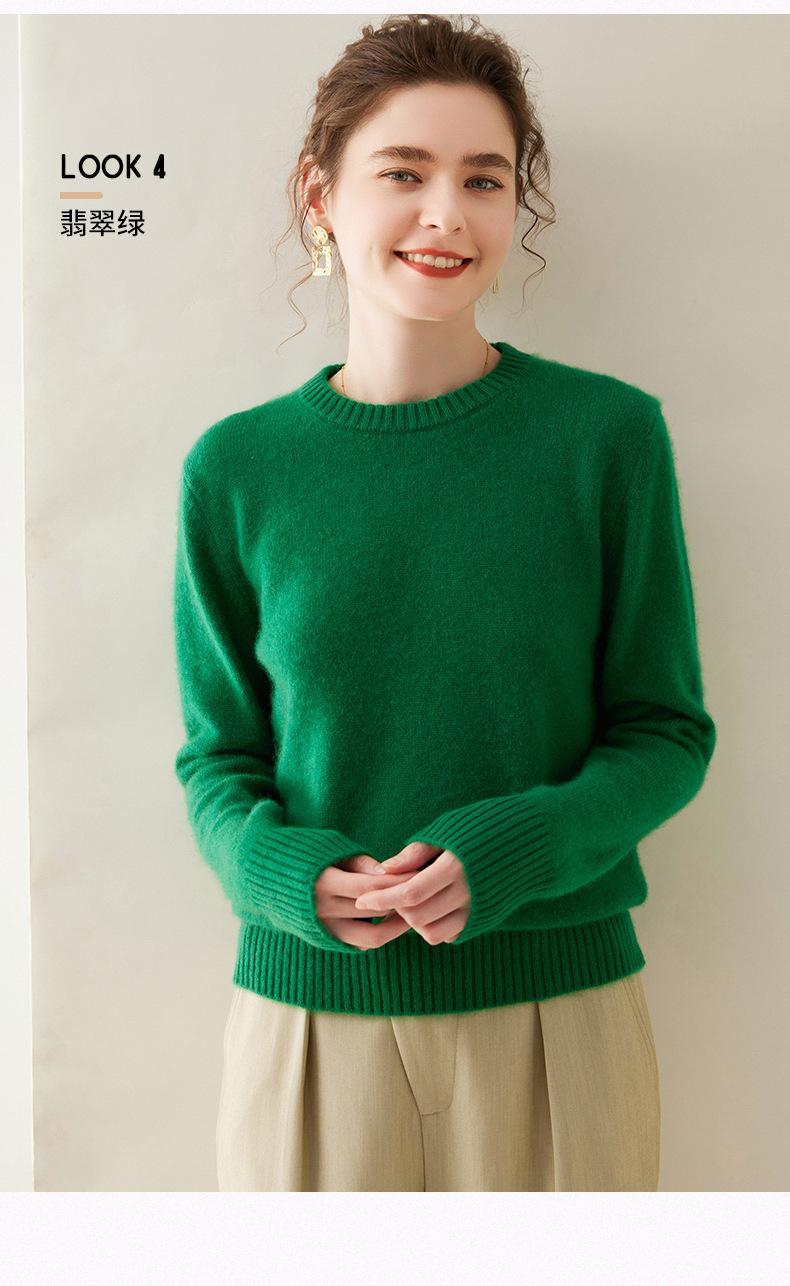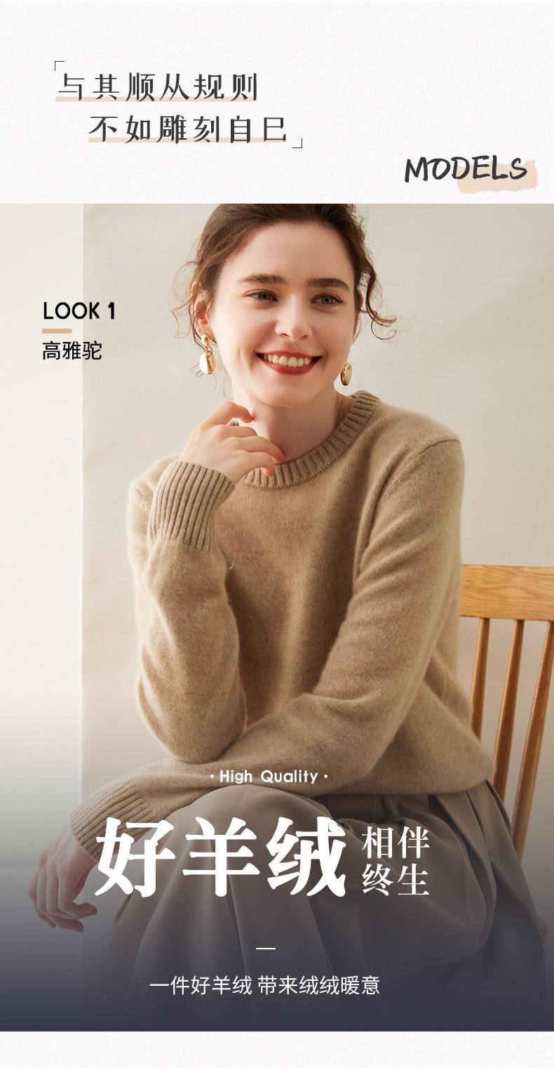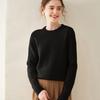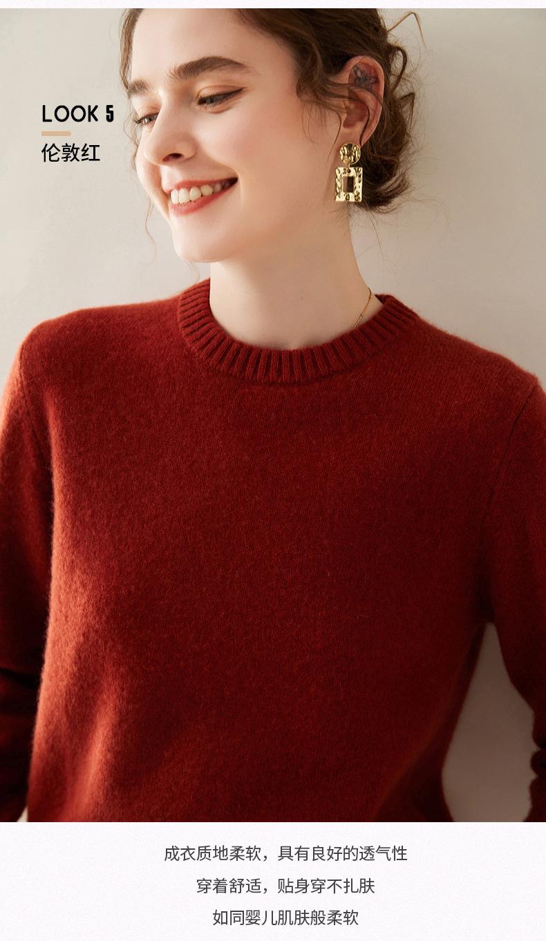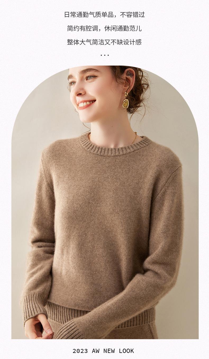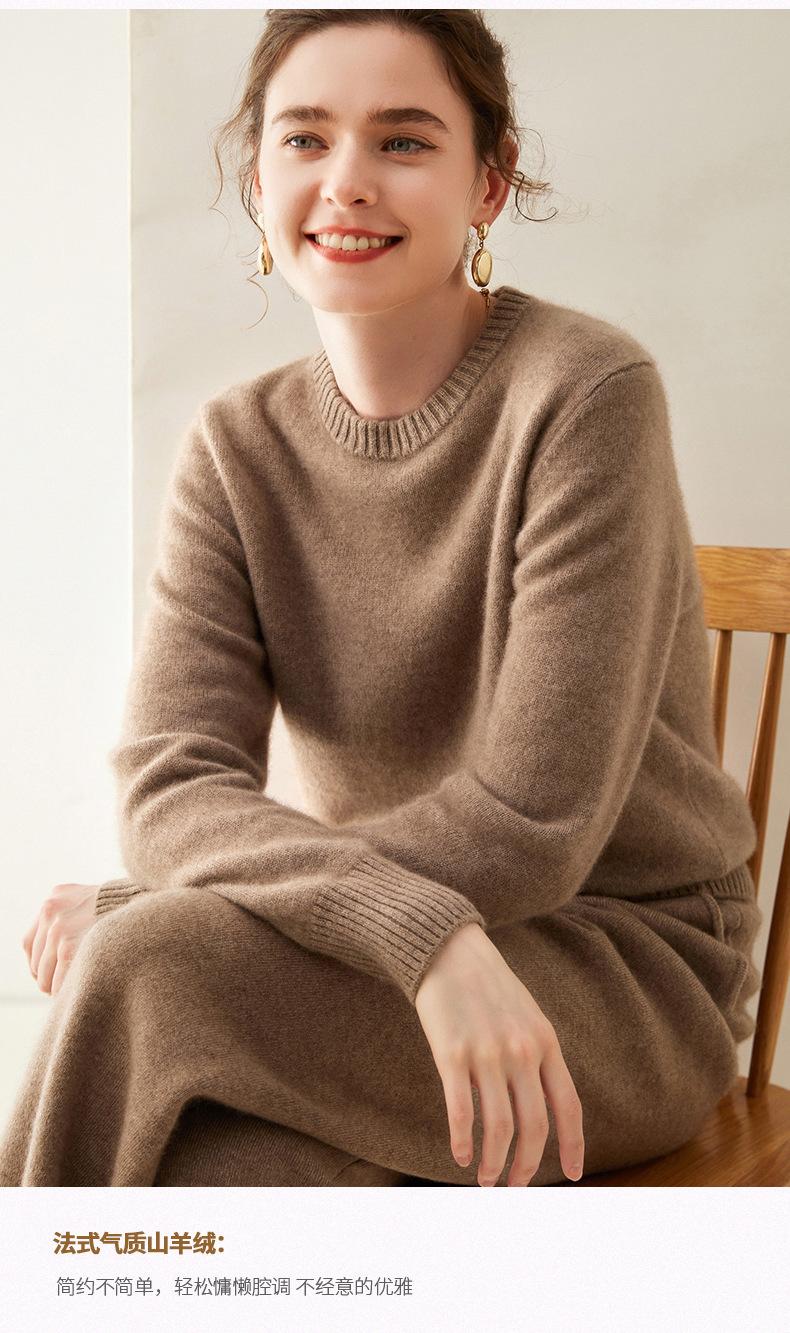 Outono e Inverno dupla fio engrossado pescoço redondo básico camisola de caxemira feminina de mangas compridas camisola inferior versátil caxemira solta