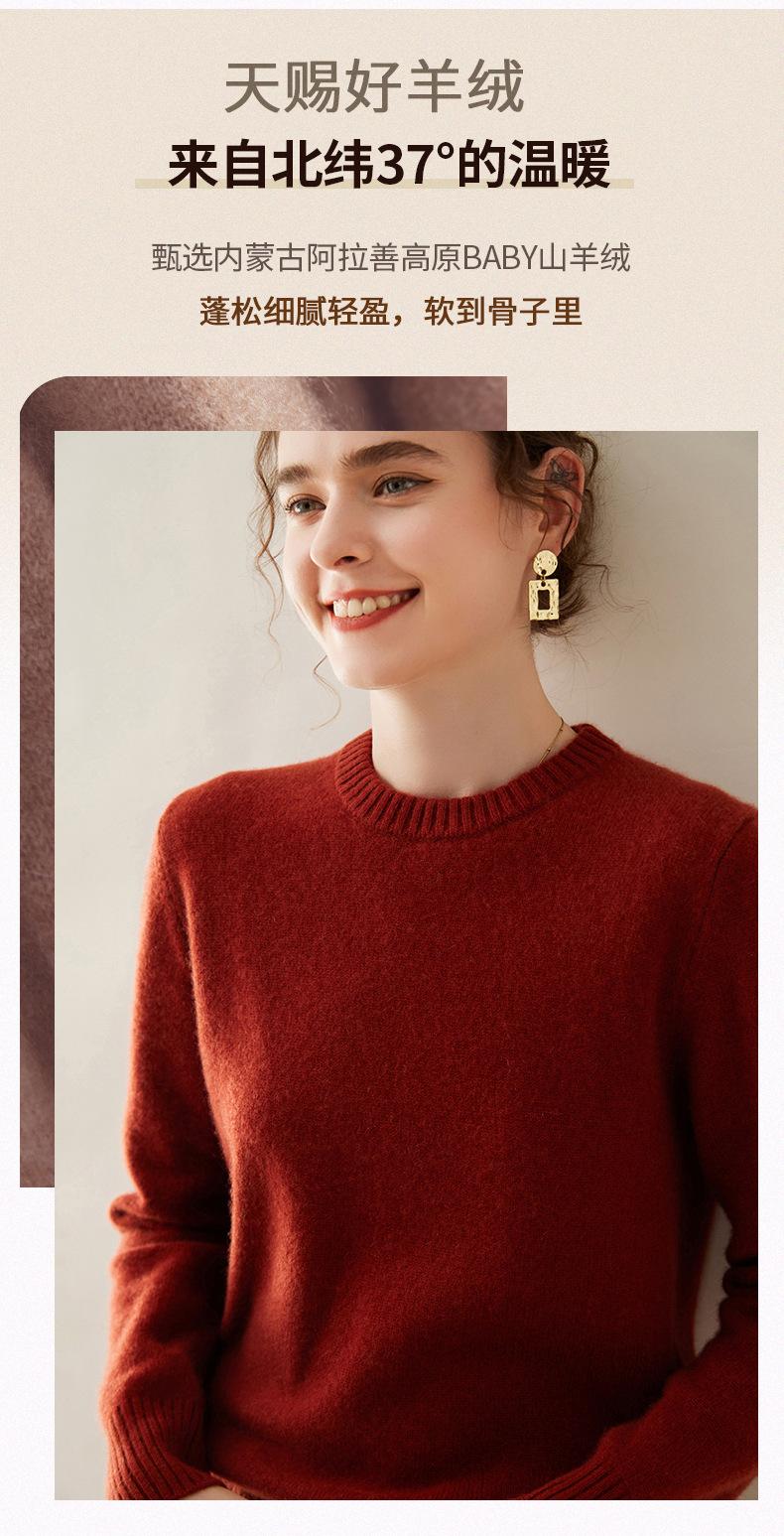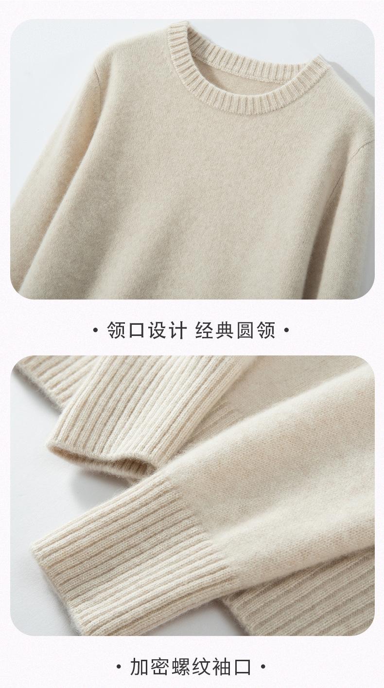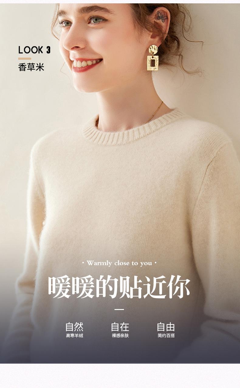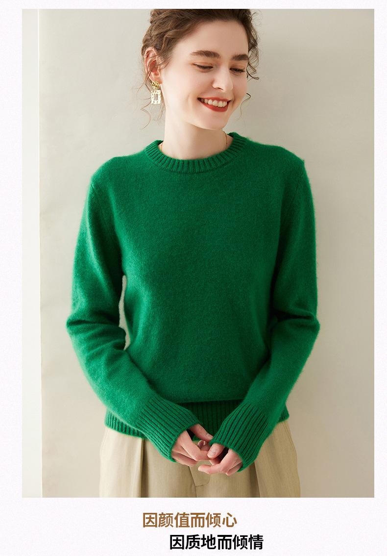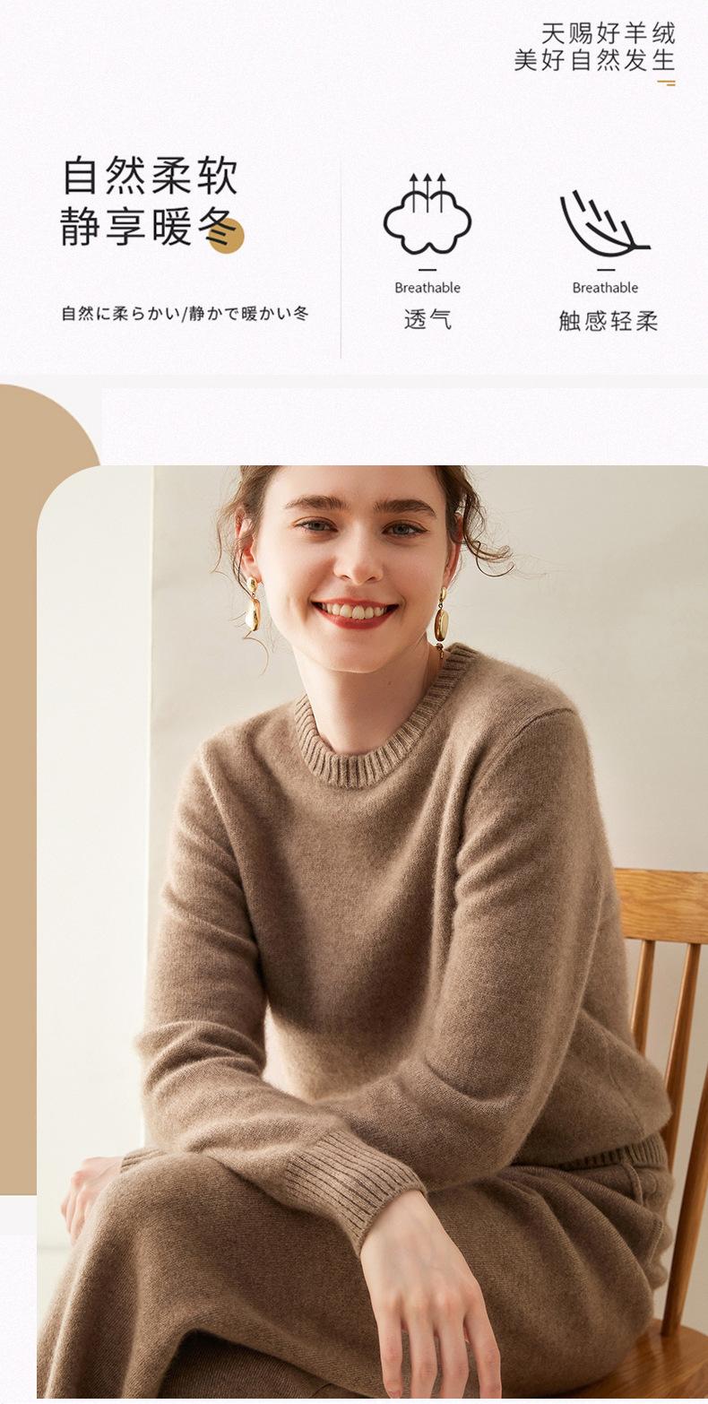 Outono e Inverno dupla fio engrossado pescoço redondo básico camisola de caxemira feminina de mangas compridas camisola inferior versátil caxemira solta