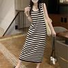 Vestido estilo suave mulheres verão 2023 novo falso de duas peças vestido sem mangas elegante vestido longo vestido listrado veste vestido