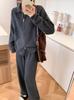 2024 Novo terno de malha feminino casual duplo zíper lar cardigan jaqueta solta larga perna conjunto de duas peças