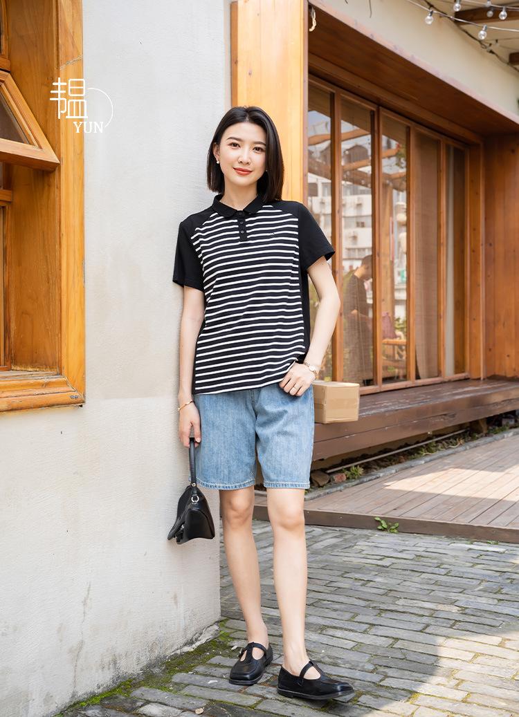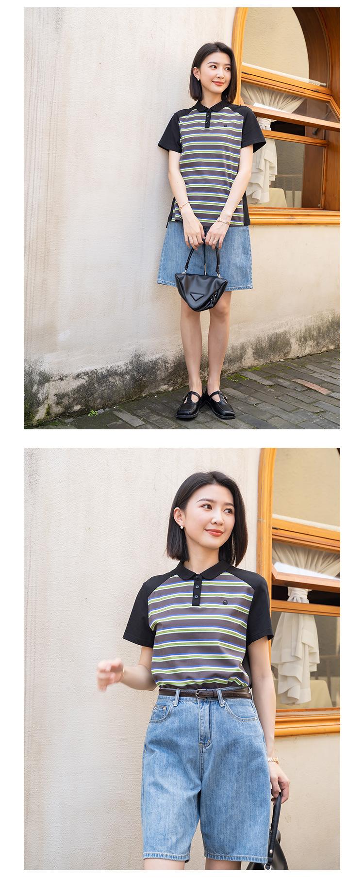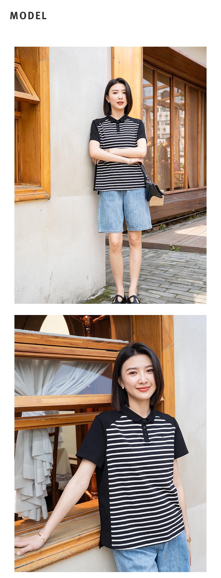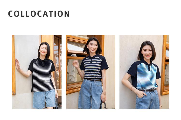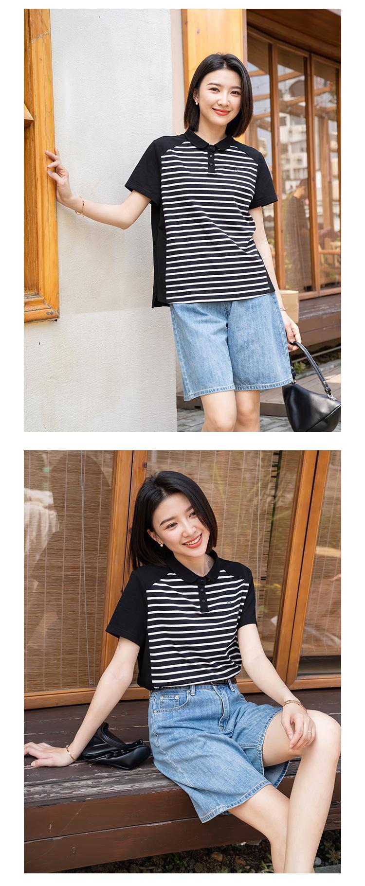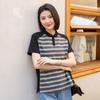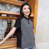 YUN Yun Verão Polo Collar Manga Curta Design Sense plus size Loose T-shirt Puro Algodão Listrado Ombro Feminino Top Casual