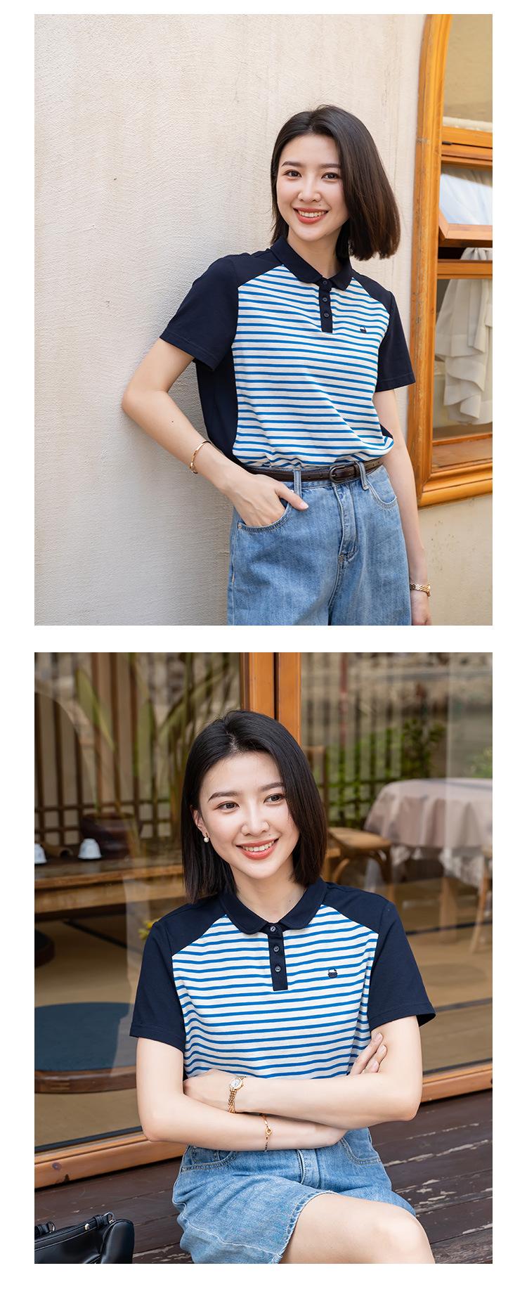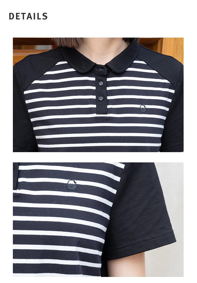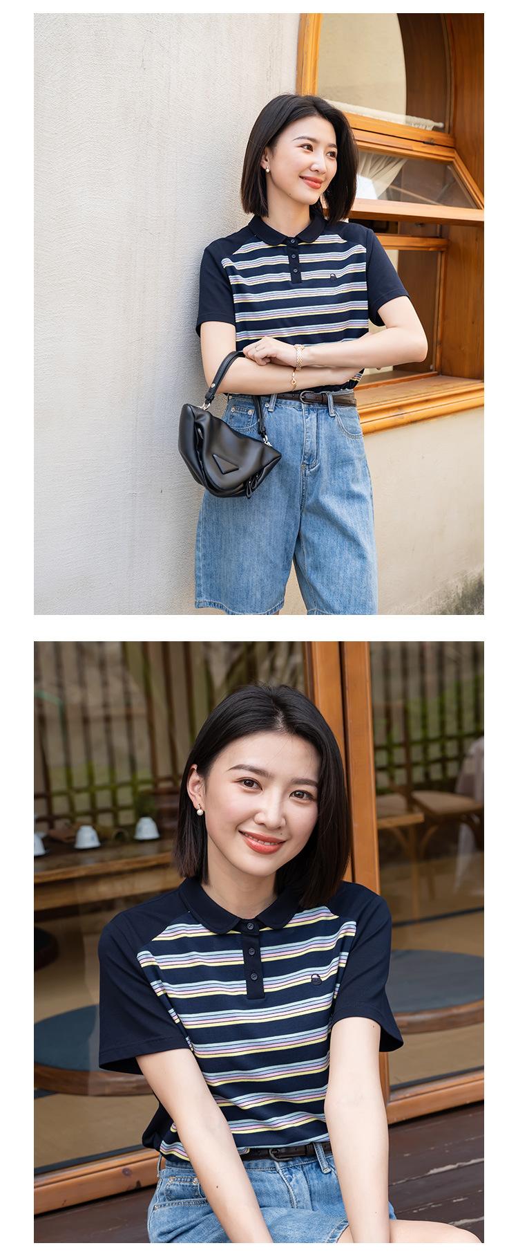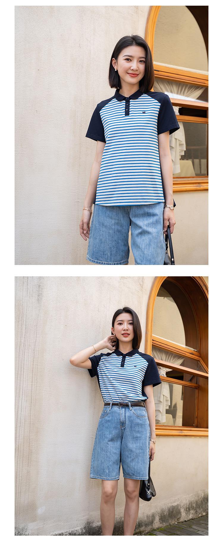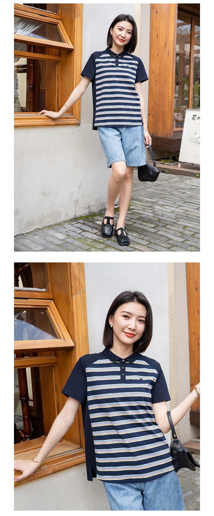 YUN Yun Verão Polo Collar Manga Curta Design Sense plus size Loose T-shirt Puro Algodão Listrado Ombro Feminino Top Casual