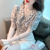 Camisa de Chiffon de Bolinhas para Mulheres 2024 Verão Nova Moda Design Elegante Nicho Camisa Fina Top de Manga Curta