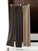 Calças de malha de cintura alta e pernas largas femininas, outono e inverno, casual, drapeado, calças femininas, uso externo, versátil, emagrecimento, calças longas retas