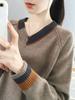 Suéter com Decote V para Mulheres, Corte Ajustado, Peça de Roupa Externa, Nova Moda Primavera 2023 Camisa Base de Tricô, Roupa Íntima Feminina, Estilo Casual Japonês e Coreano