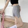 3050# Estilo Esportivo Preto Split Saia Mulheres Verão Fino Cintura Alta Quadril Forma A- Forma Shorts Saia
