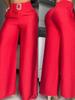 2023 Comércio Exterior Europeu e Americano Roupas femininas de cor sólida perna larga cintura alta emagrecimento solto metal decorativo calças flared pode ser colorido