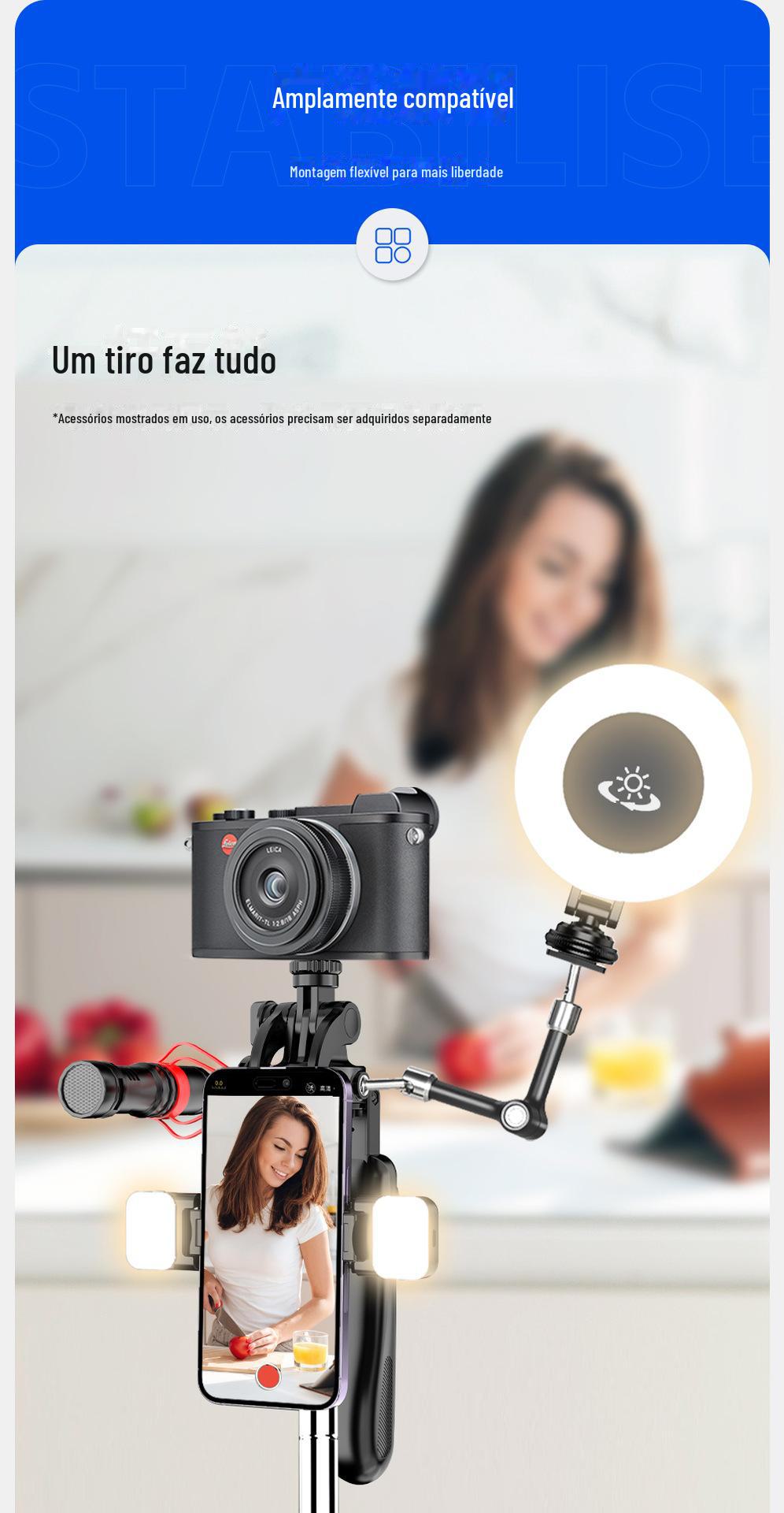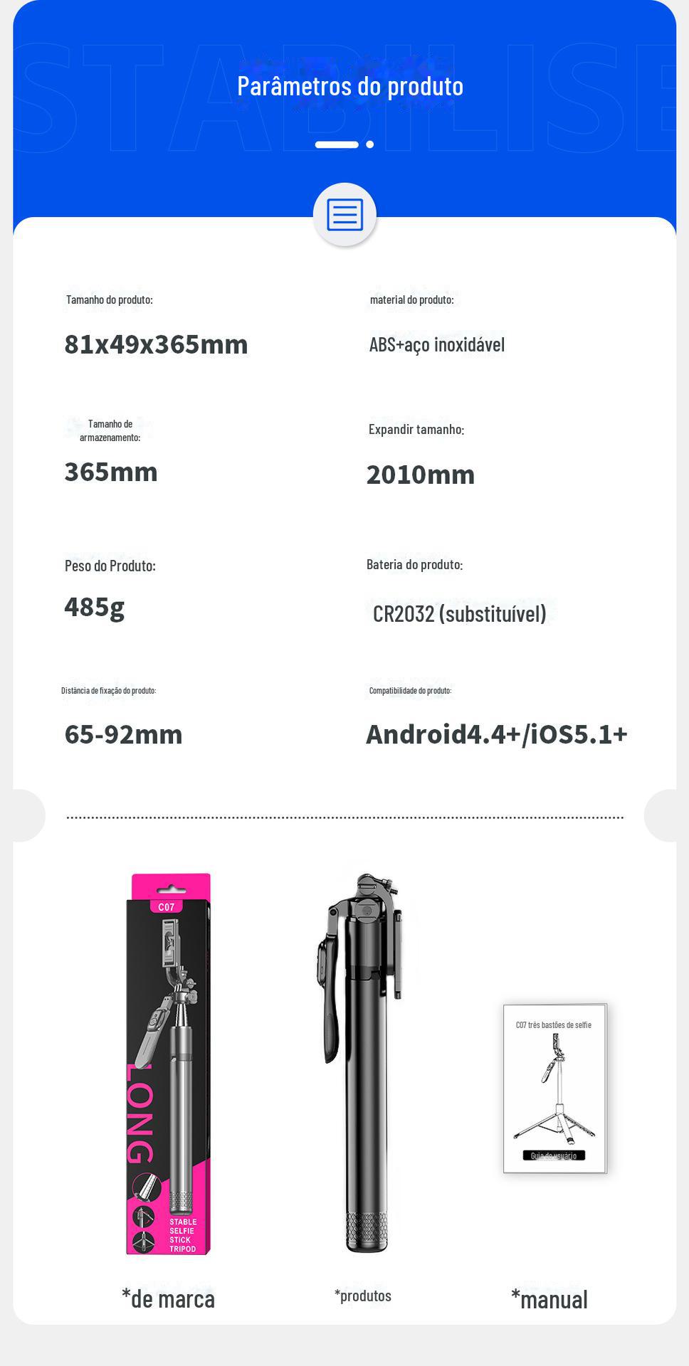 Cross-border novo 2,02 m C07 equilibrado tiro estável multi-função expansão tripé selfie stick Bluetooth suporte ao vivo