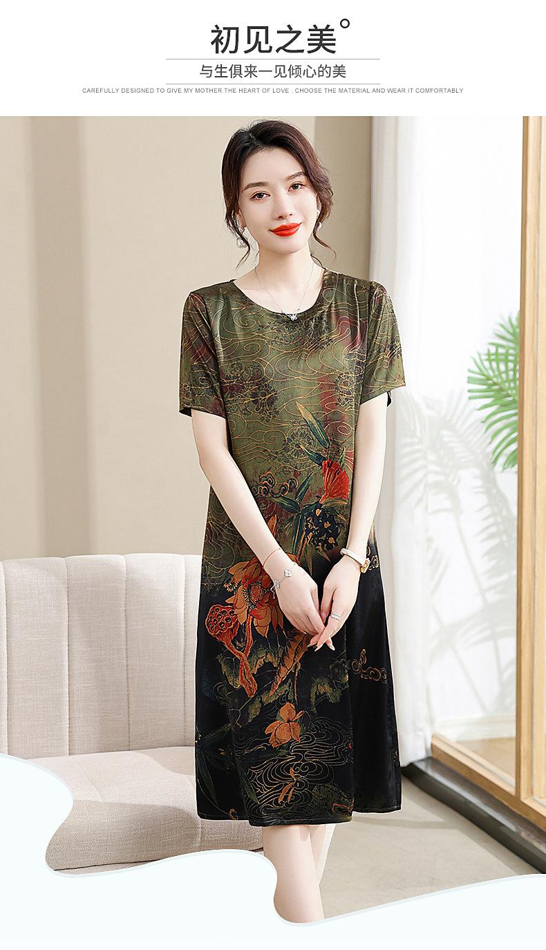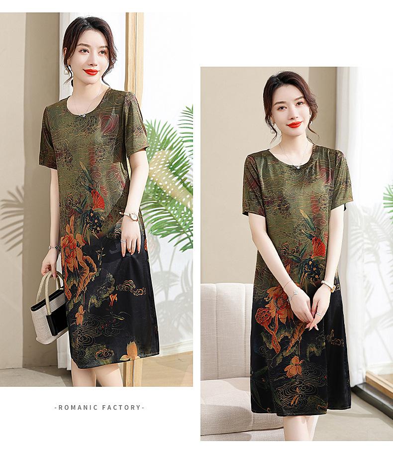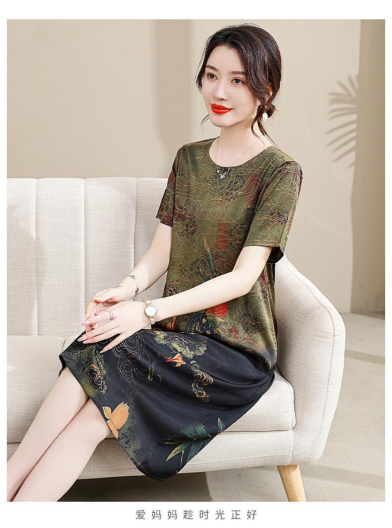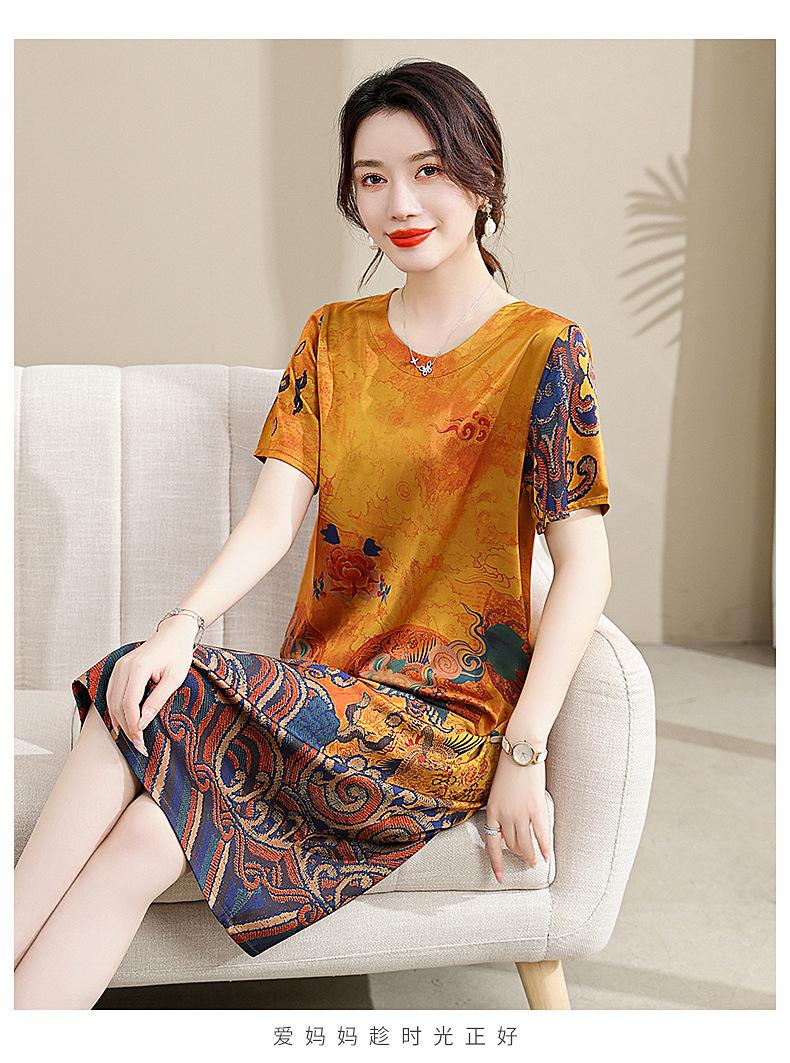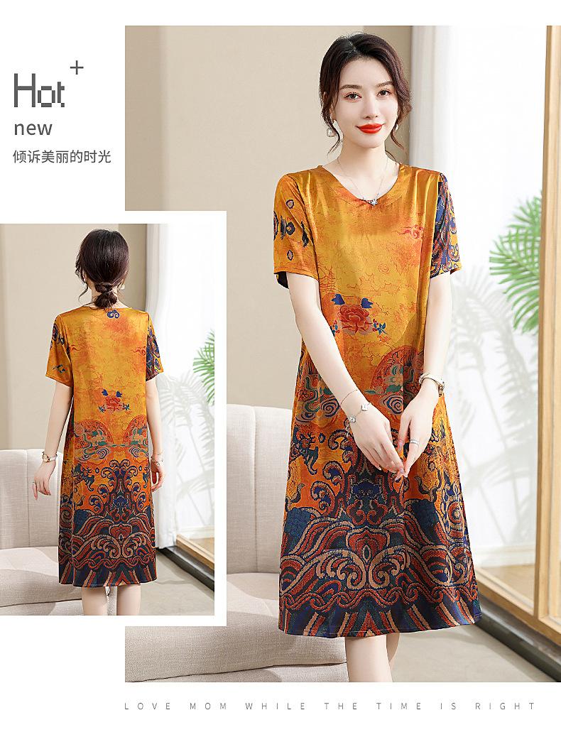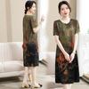 Vestido mãe verão plus size 2023 nova senhora de meia idade estilo estrangeiro senhora de meia idade e idosa saia de seda