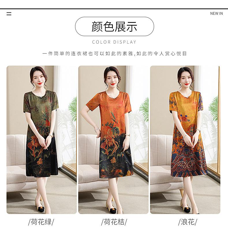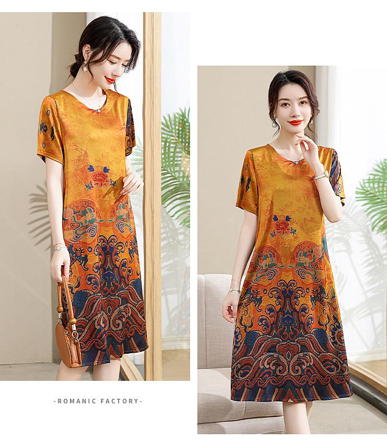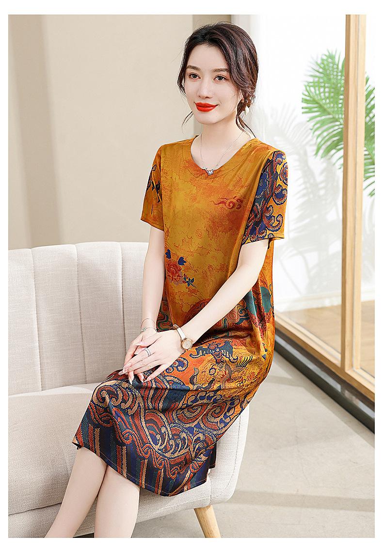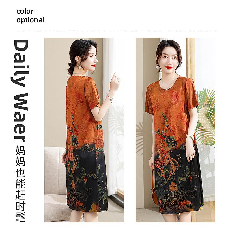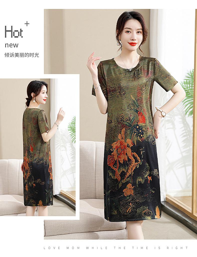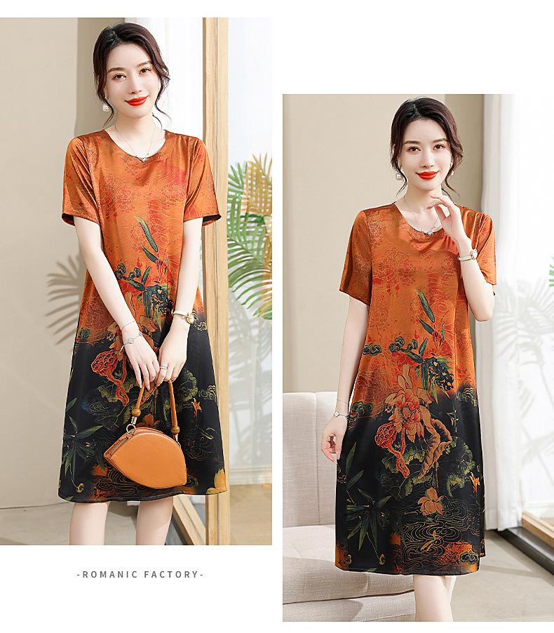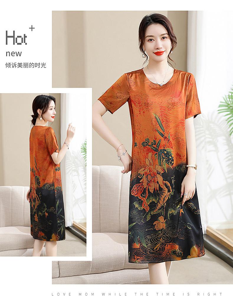 Vestido mãe verão plus size 2023 nova senhora de meia idade estilo estrangeiro senhora de meia idade e idosa saia de seda