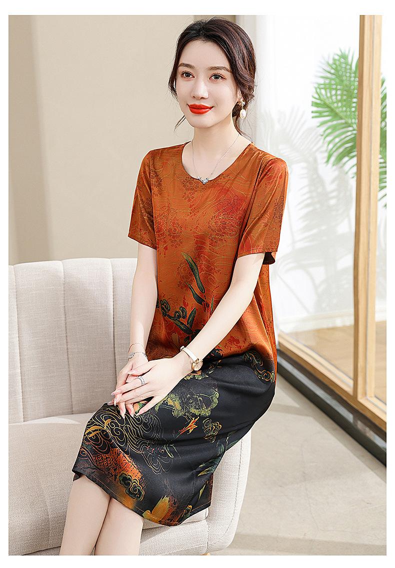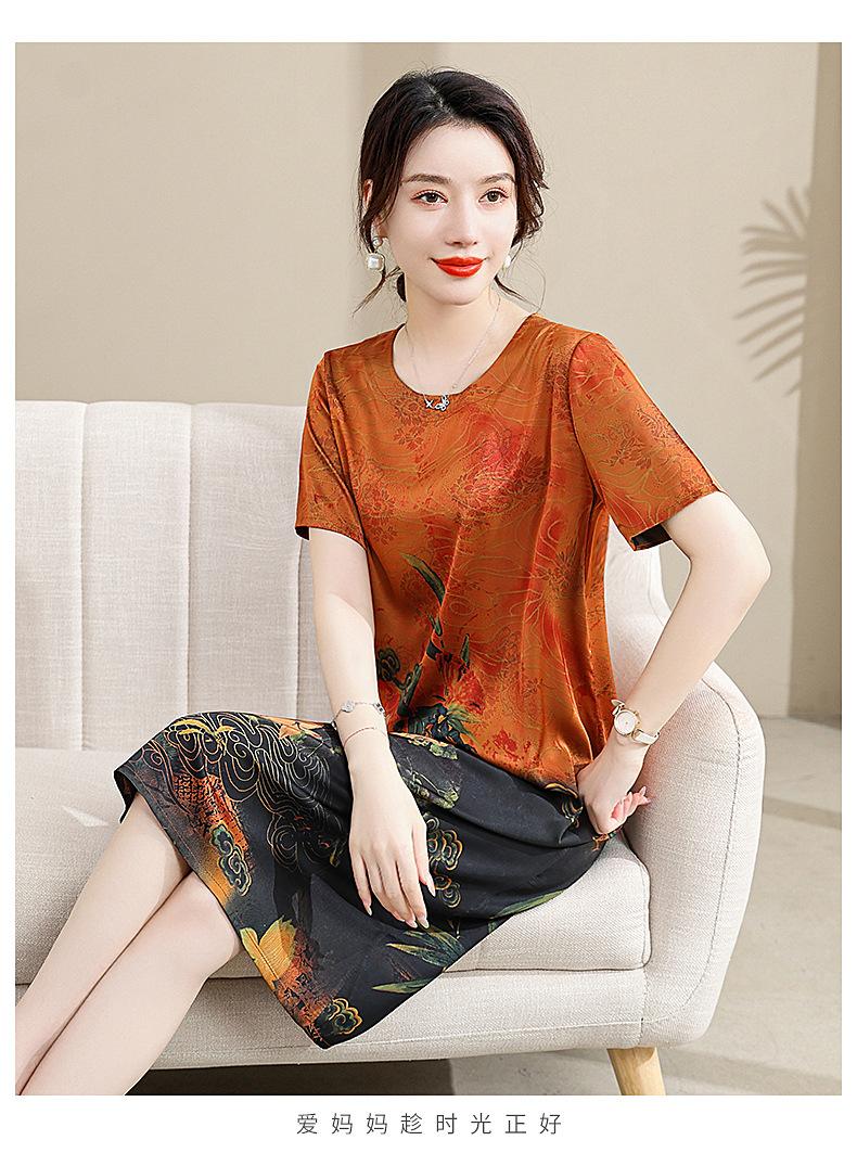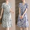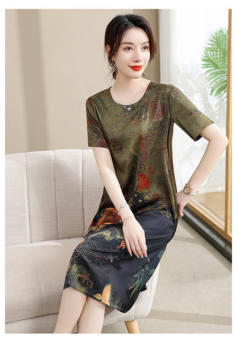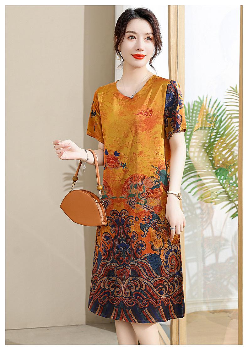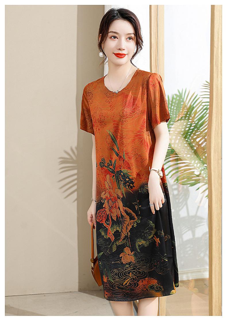 Vestido mãe verão plus size 2023 nova senhora de meia idade estilo estrangeiro senhora de meia idade e idosa saia de seda