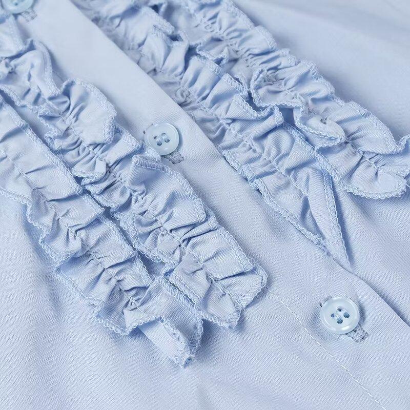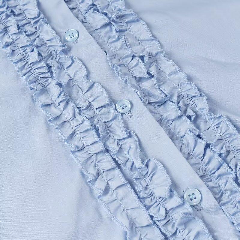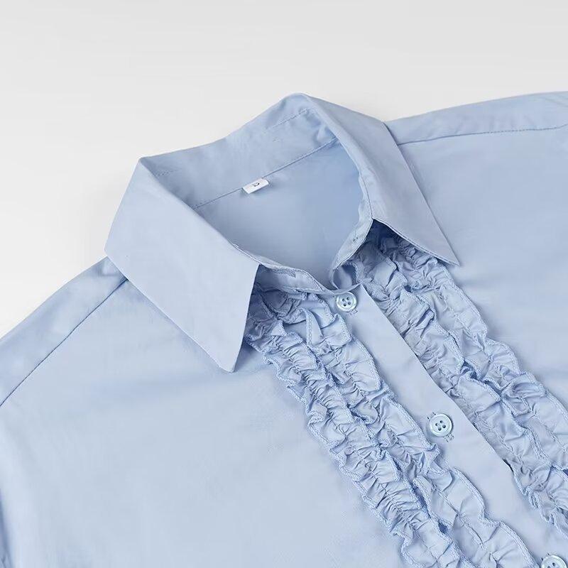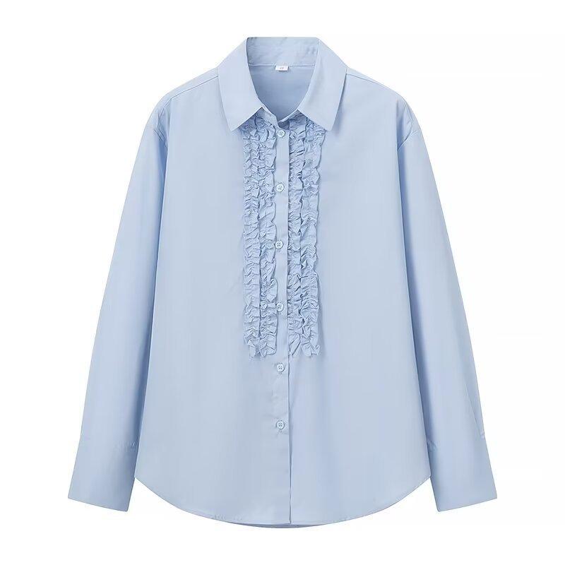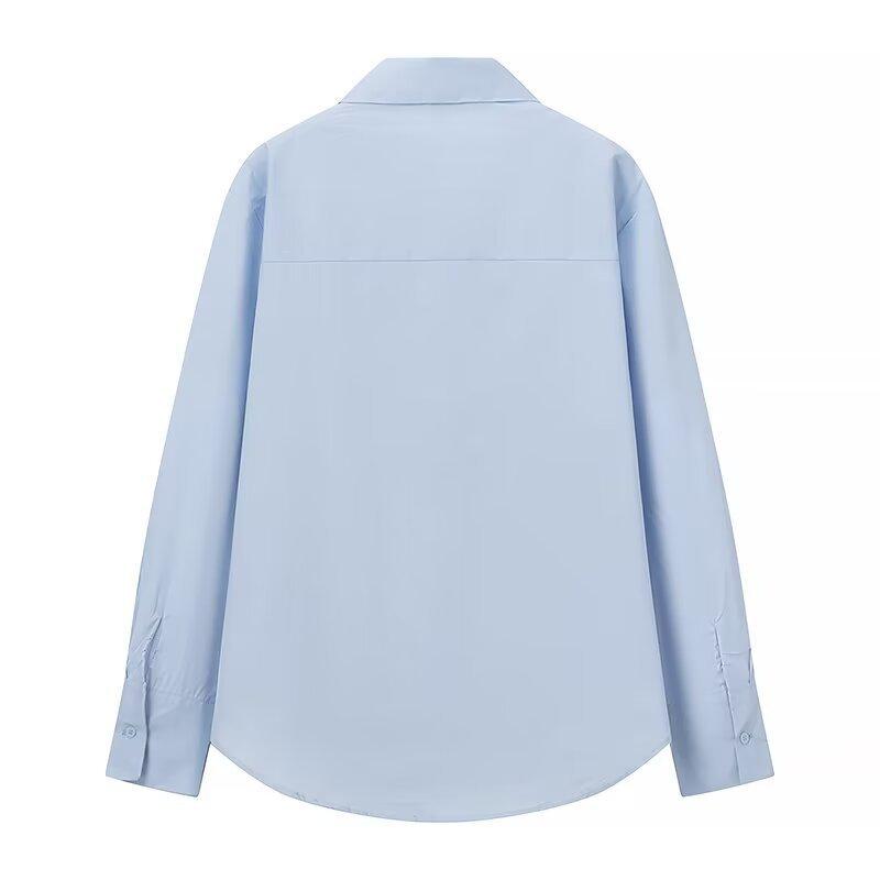 2024 primavera nova europeia e americana cross-border roupas femininas peito em camadas decoração popeline camisa de manga longa w091 1896