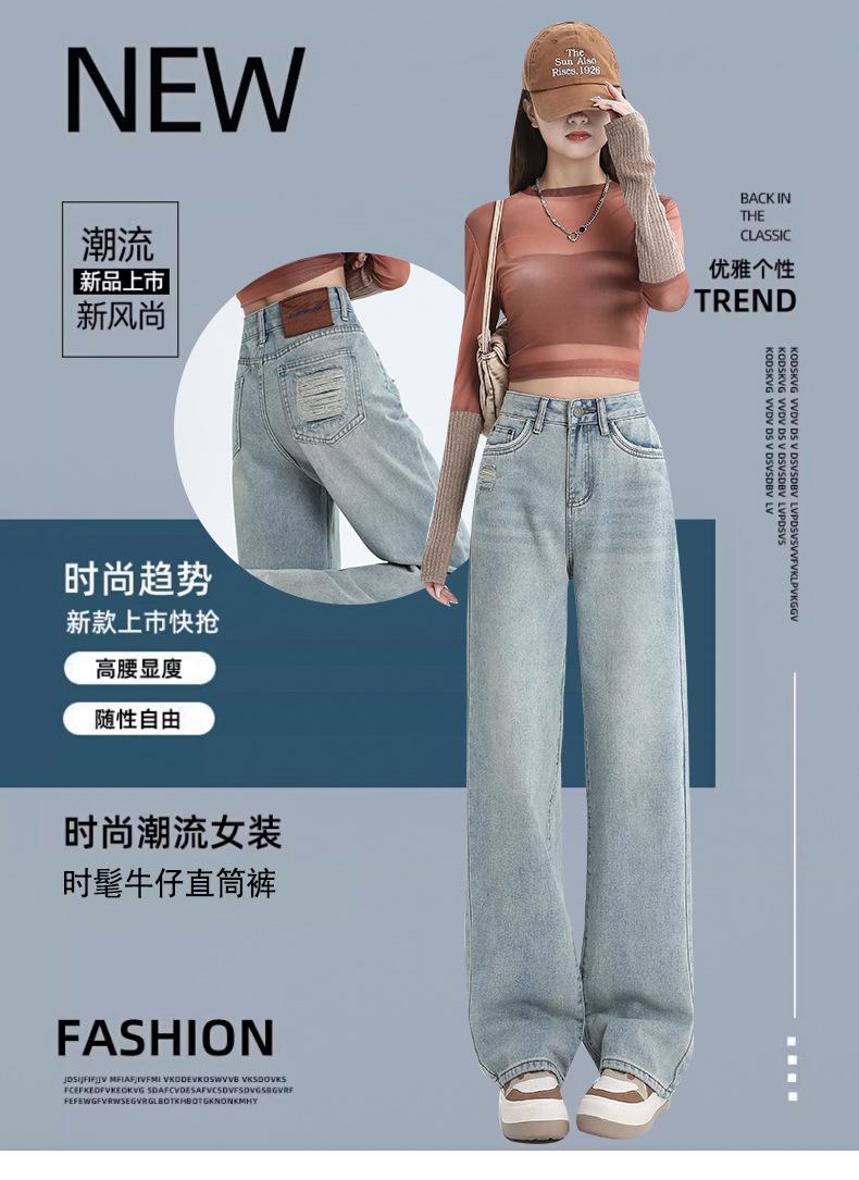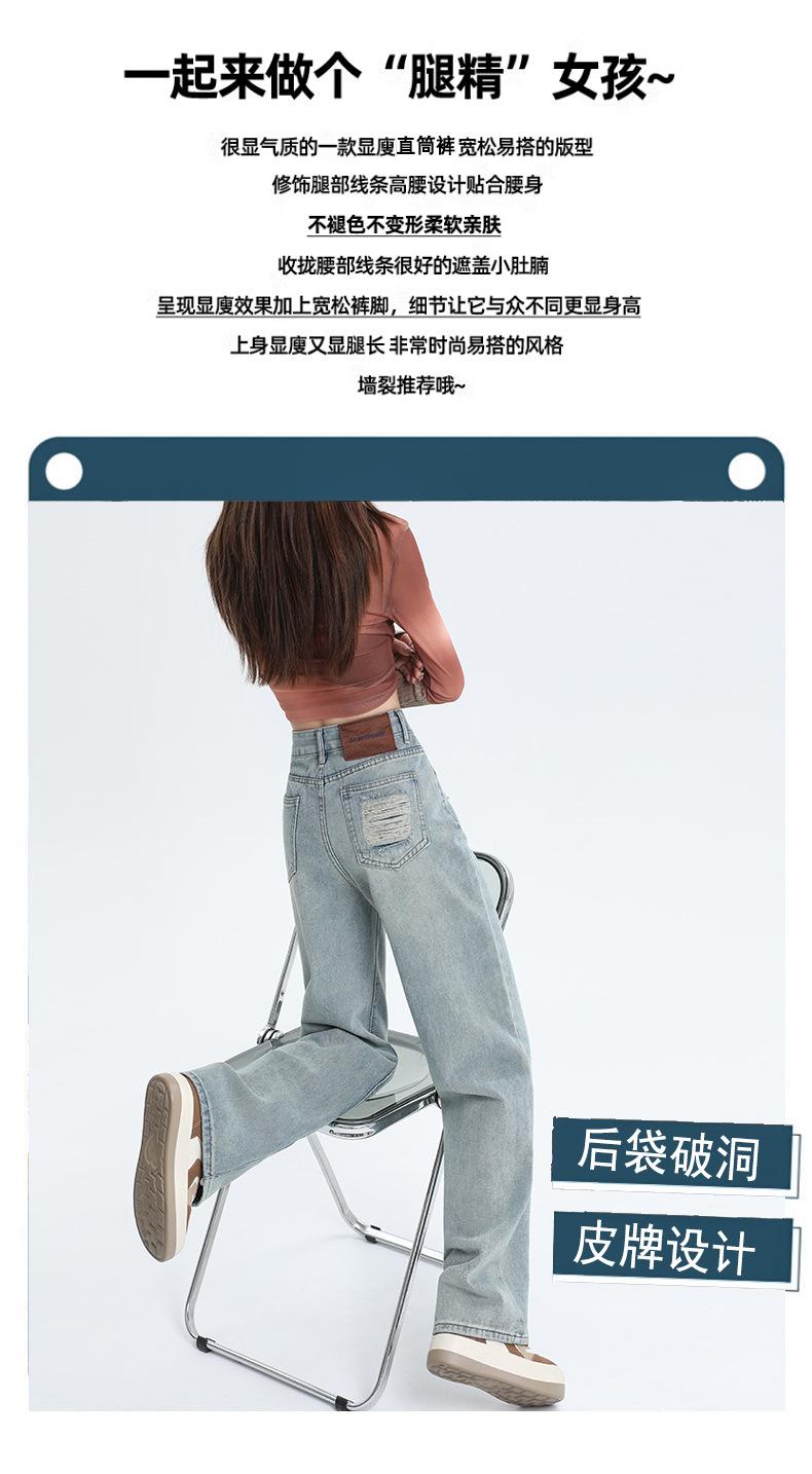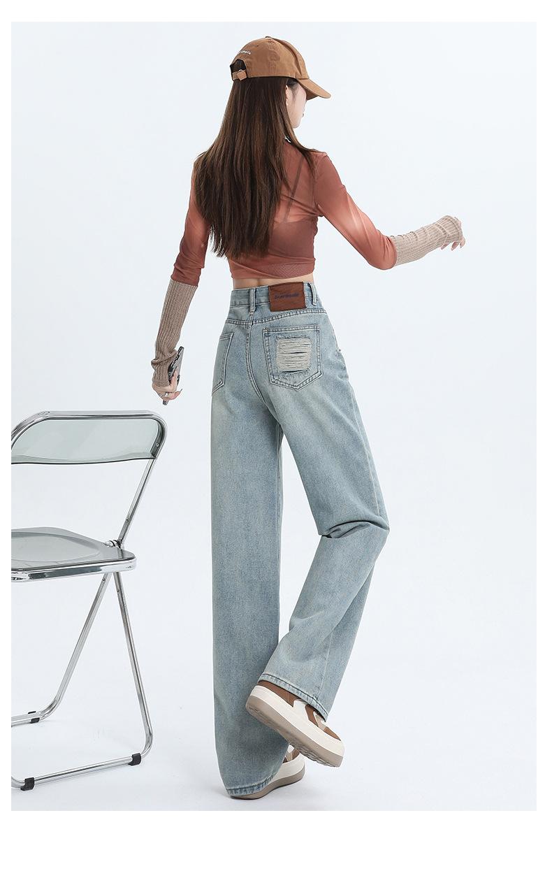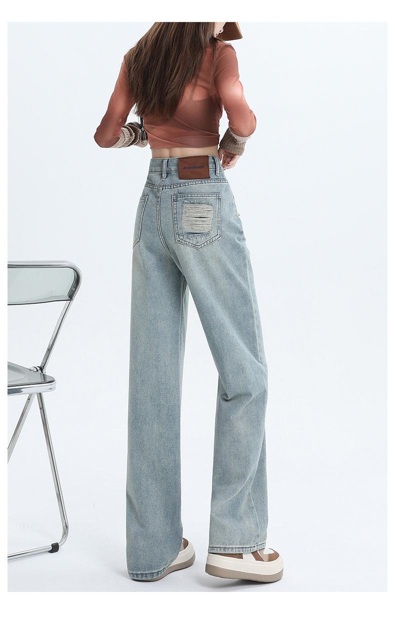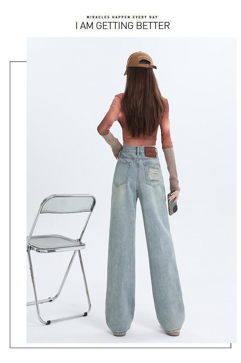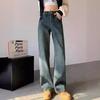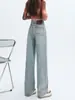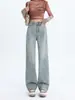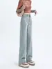 Jeans Feminino 2025 Primavera Novo Solto Slim-Fit Estreito Reto Design Moderno Rasgado Calças Perna Larga