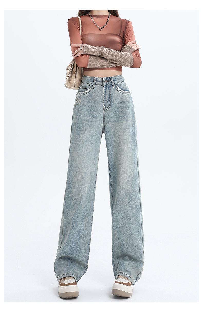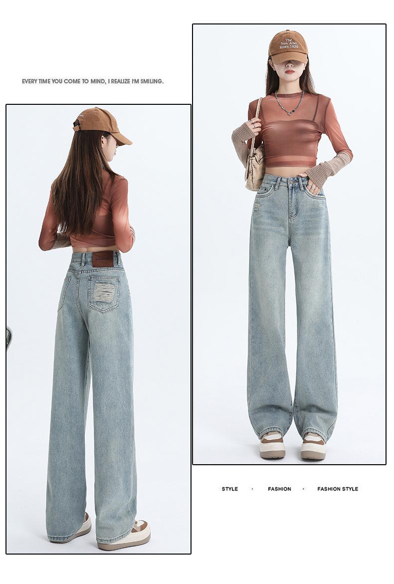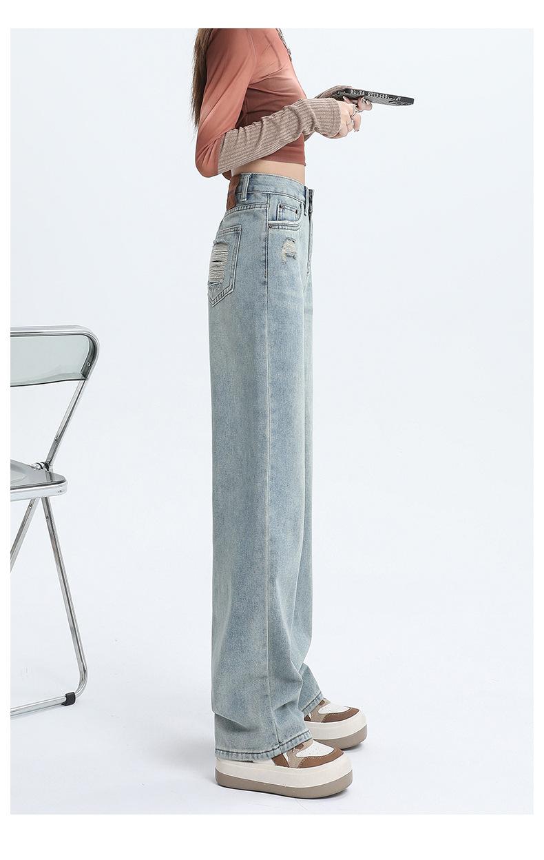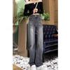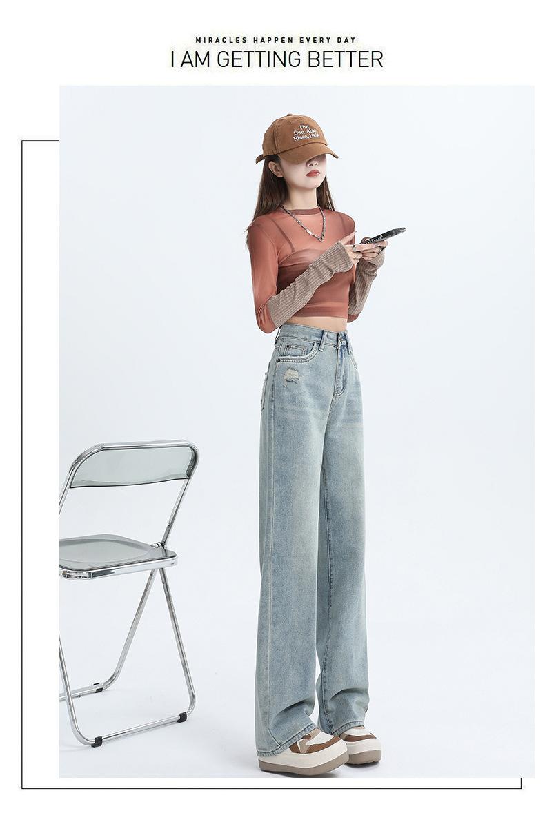 Jeans Feminino 2025 Primavera Novo Solto Slim-Fit Estreito Reto Design Moderno Rasgado Calças Perna Larga
