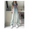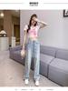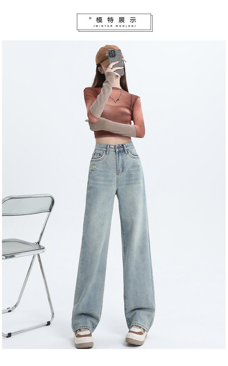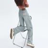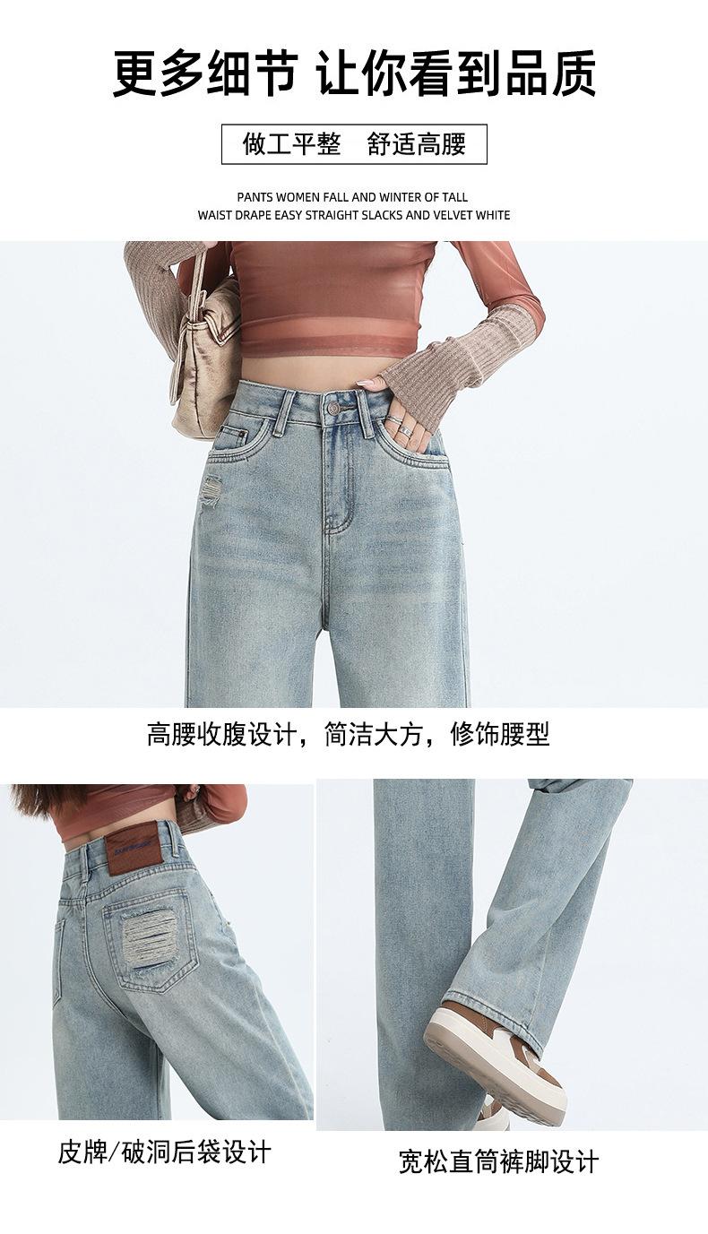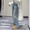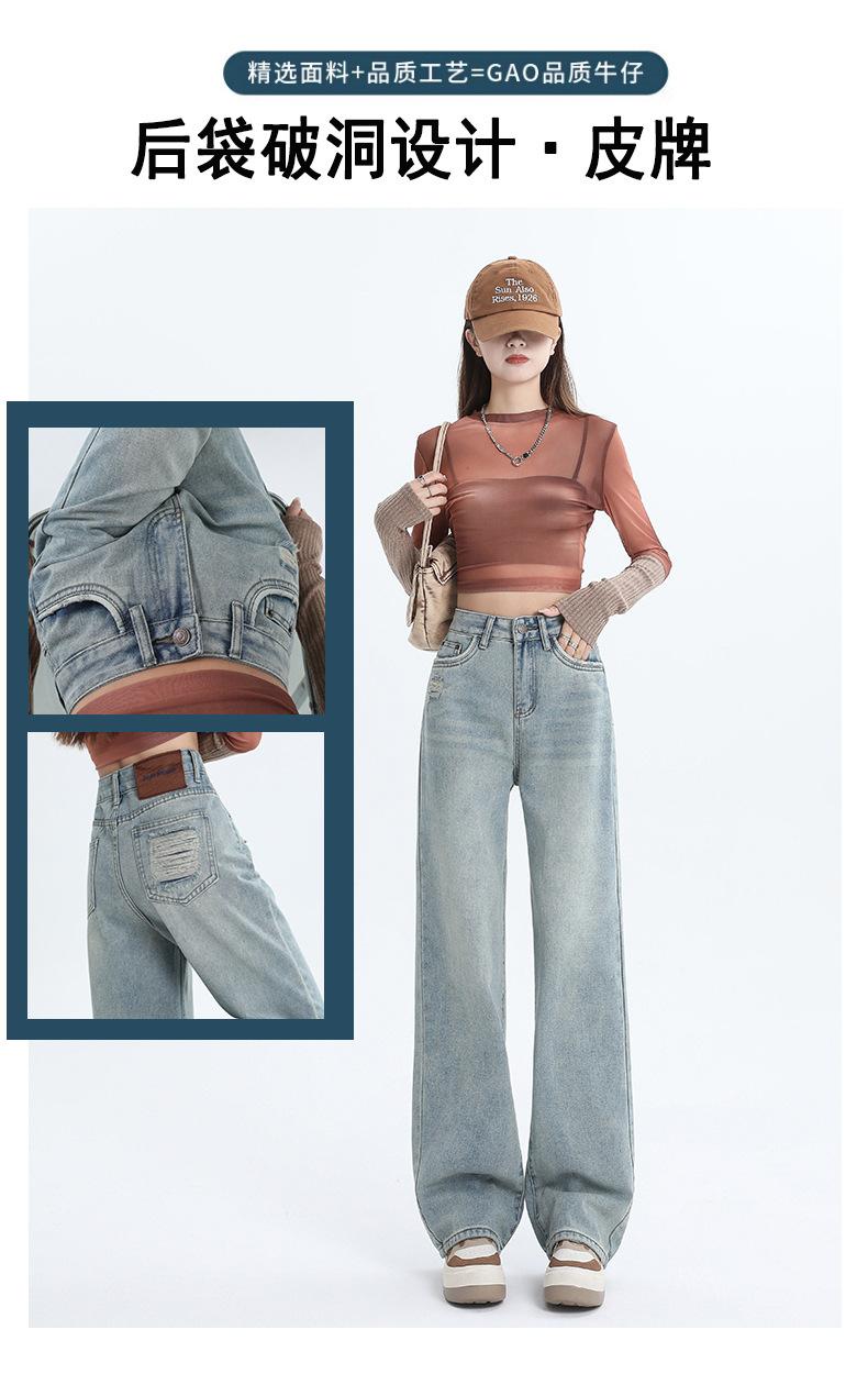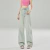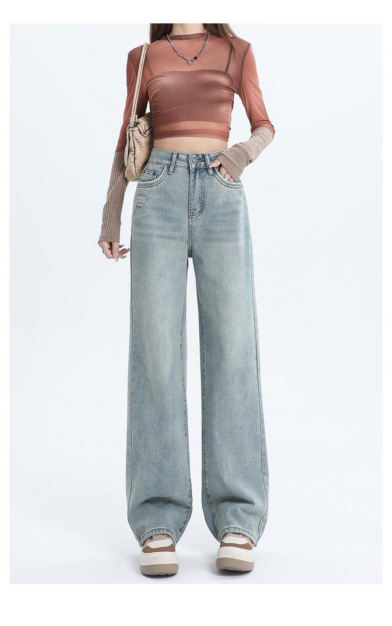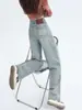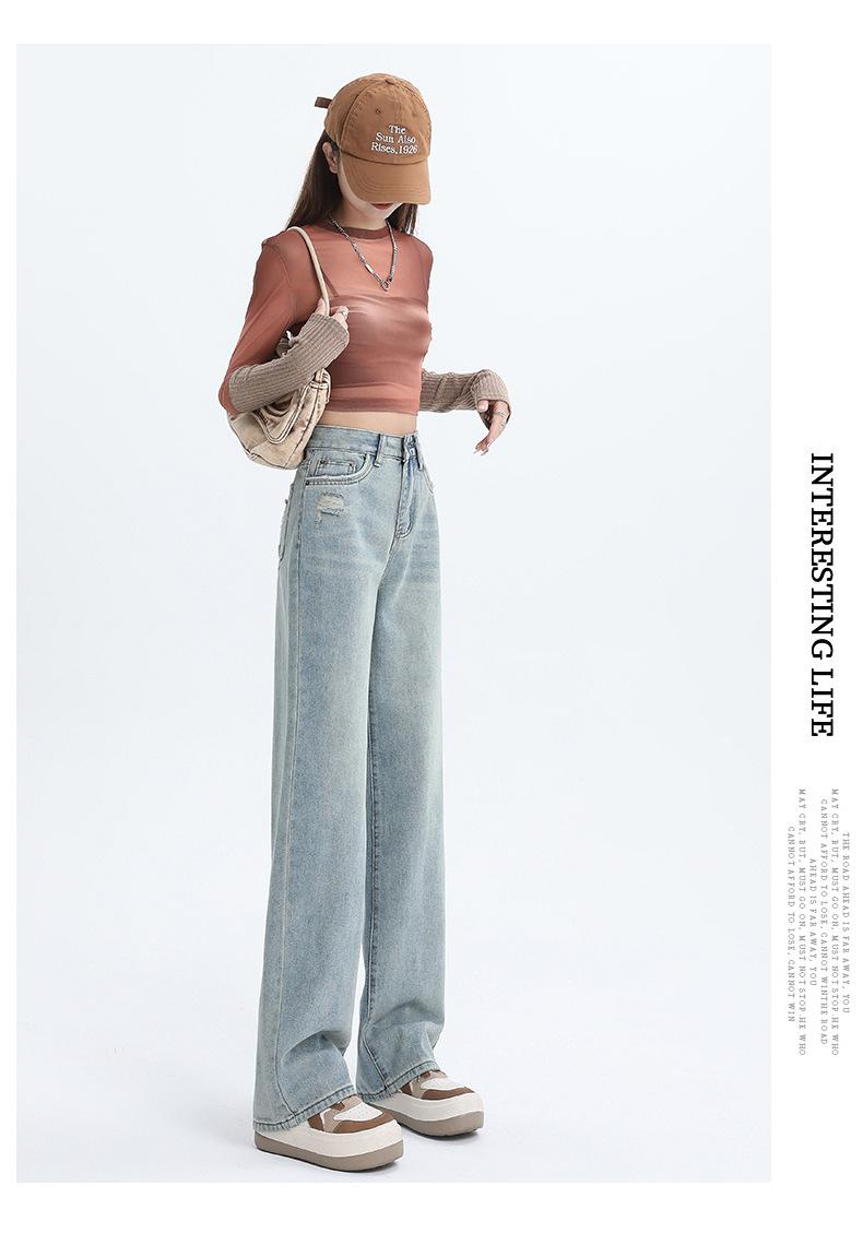 Jeans Feminino 2025 Primavera Novo Solto Slim-Fit Estreito Reto Design Moderno Rasgado Calças Perna Larga