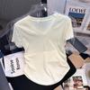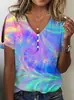 Camiseta estampada de manga curta com decote em V 2023 Novo Verão Dopamina Wear Loose Top Moda Feminina