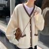 Preguiçoso retro contraste cor V-neck casaco suéter para as mulheres Primavera e Outono 2023 novo estilo japonês solto all-match moda cardigan tricotado
