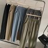 Calças Casuais de Verão 2025 de Secagem Rápida para Mulheres Cintura Alta Caimento Slim Soltas Calças de Perna Pequena com Bolsos Cordão Calças de Perna Reta