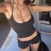 Compre Conjunto Sexy Europeu e Americano para Mulheres 2024 Verão Regata Dupla Camadas Decote Halter + Shorts Sexy de Cordão Cintura Baixa no atacado no Joom.pro