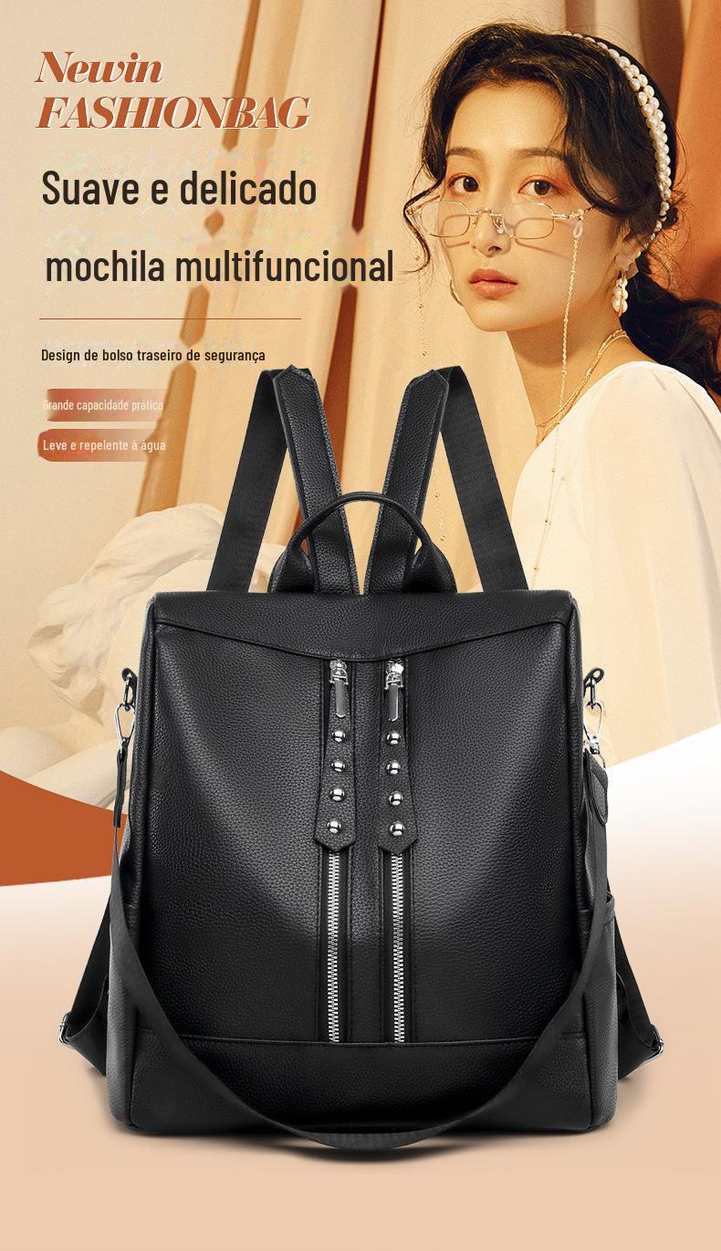 Mochila de couro macio das mulheres 2024 nova mochila pu casual de grande capacidade mochila feminina de uso duplo mochila feminina
